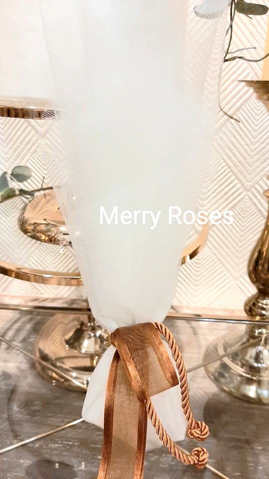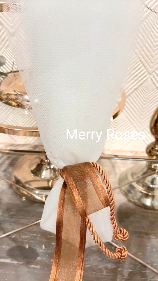 Τούλινη μπομπονιέρα γάμου με λευκό φινίρισμα σατέν και λευκό φιόγκο απο γκρό κορδέλα.