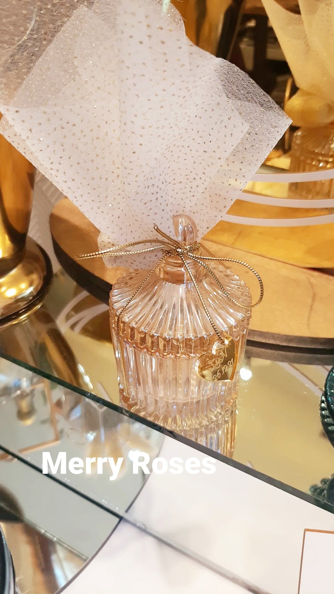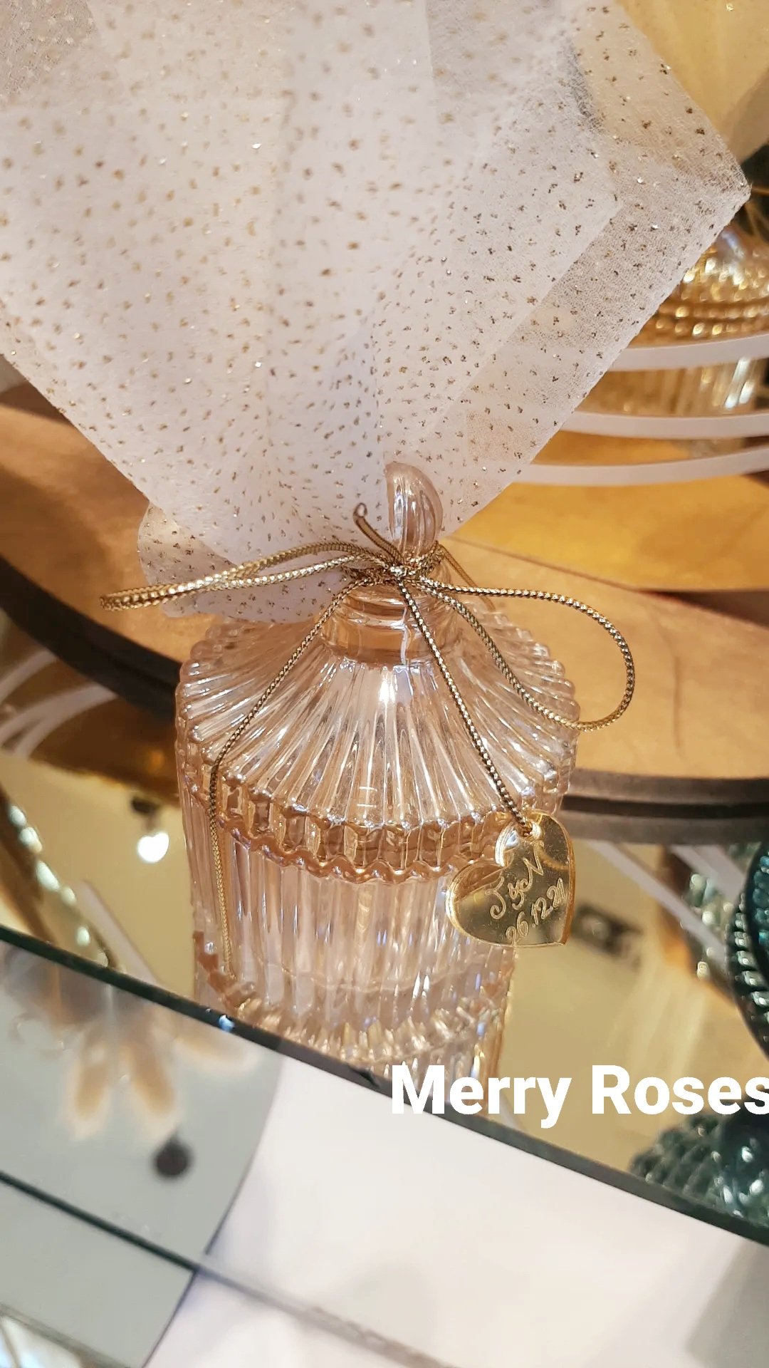 Μπομπονιέρα γάμου γυάλινη φοντανιέρα περλέ απόχρωσης χρυσού.