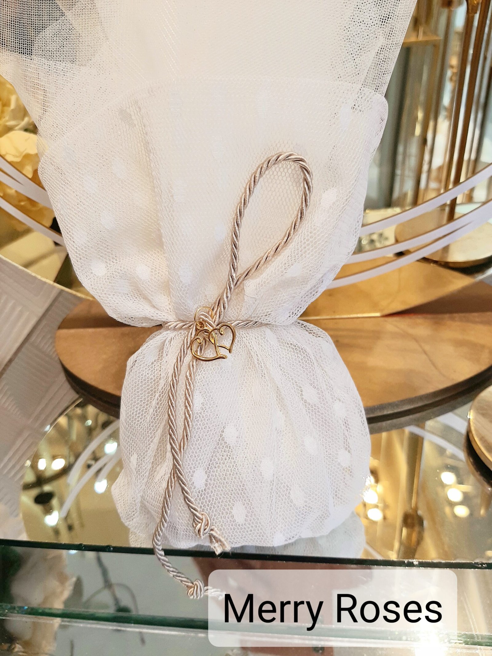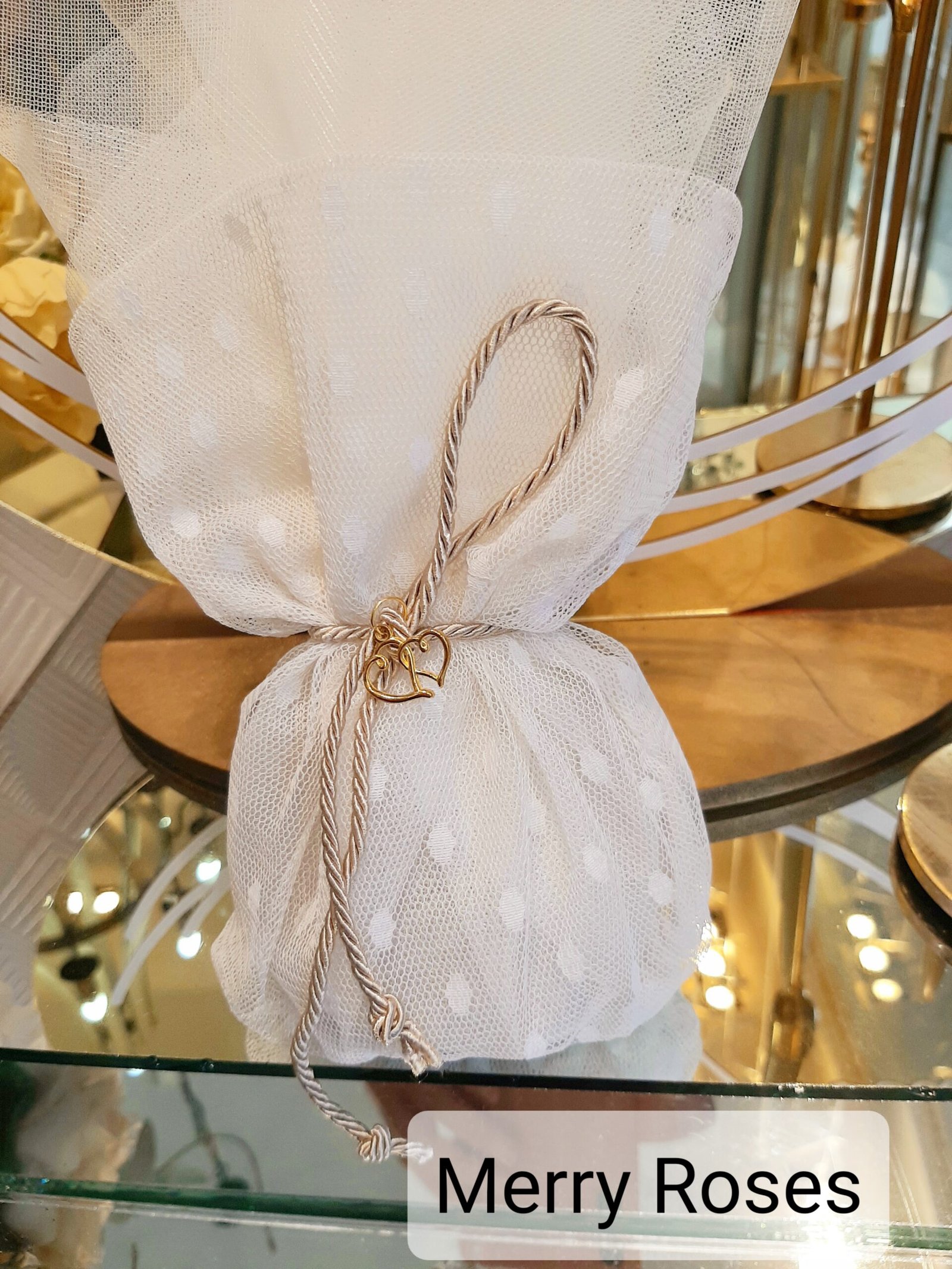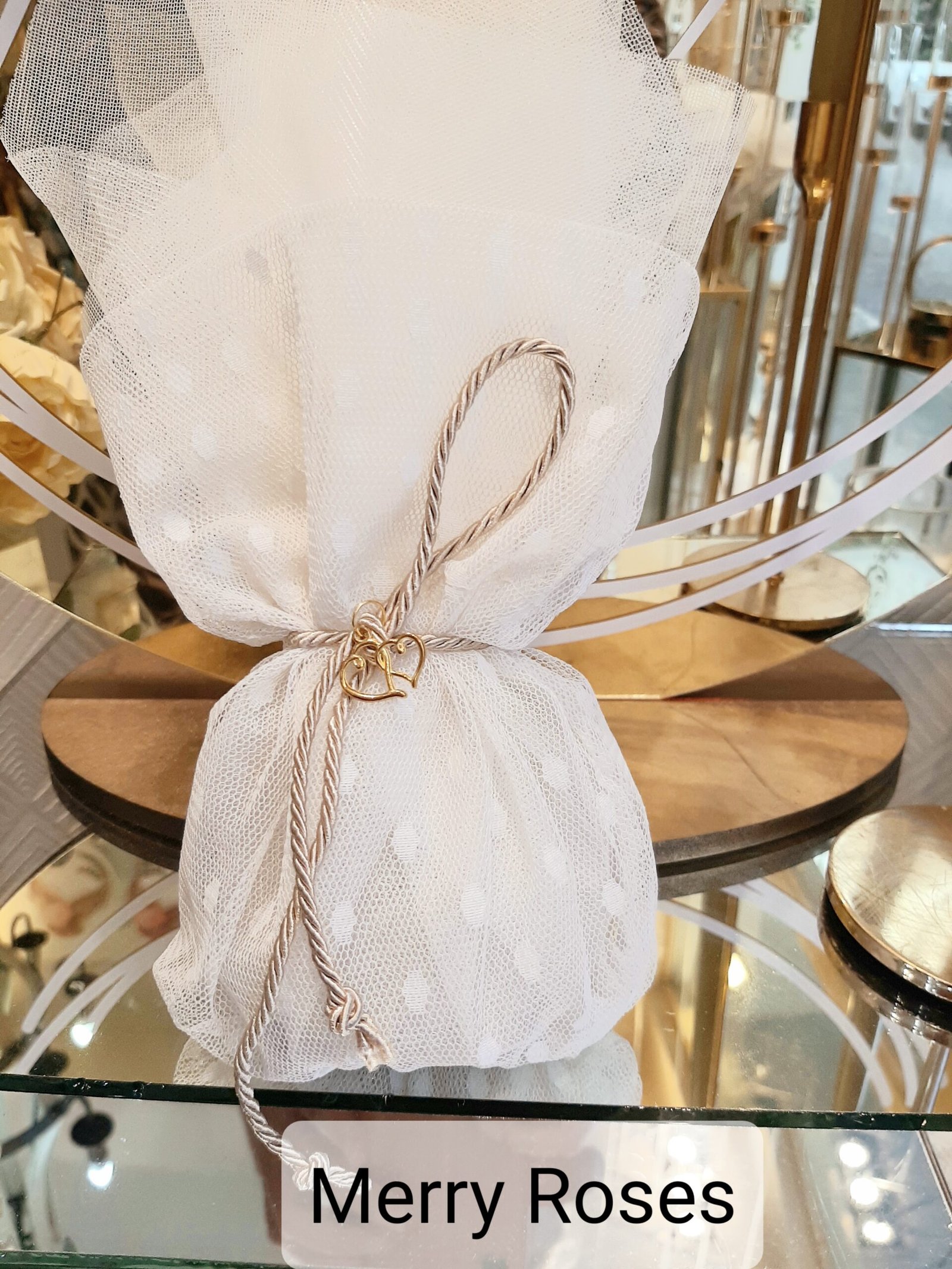 Τούλινο πουά πουγκί ιβουάρ 8×13 εκ
