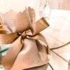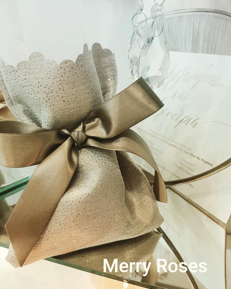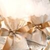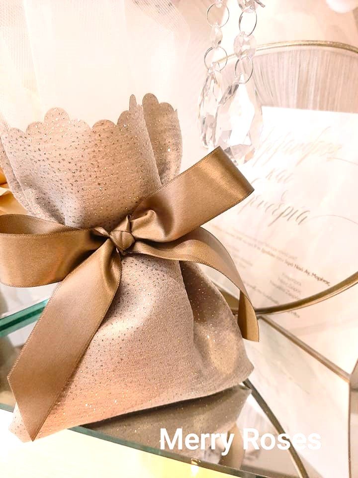 Μπομπονιέρα γάμου Lux Collection ,ιριδίζον πουγκί ντουμπλαρισμένο λαδί με χρυσό