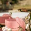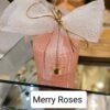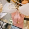 Μπομπονιέρα βάπτισης φοντανιέρα ροζ με χρυσή λεπτομέρεια και αλυσιδάκι κόσμημα με κορώνα