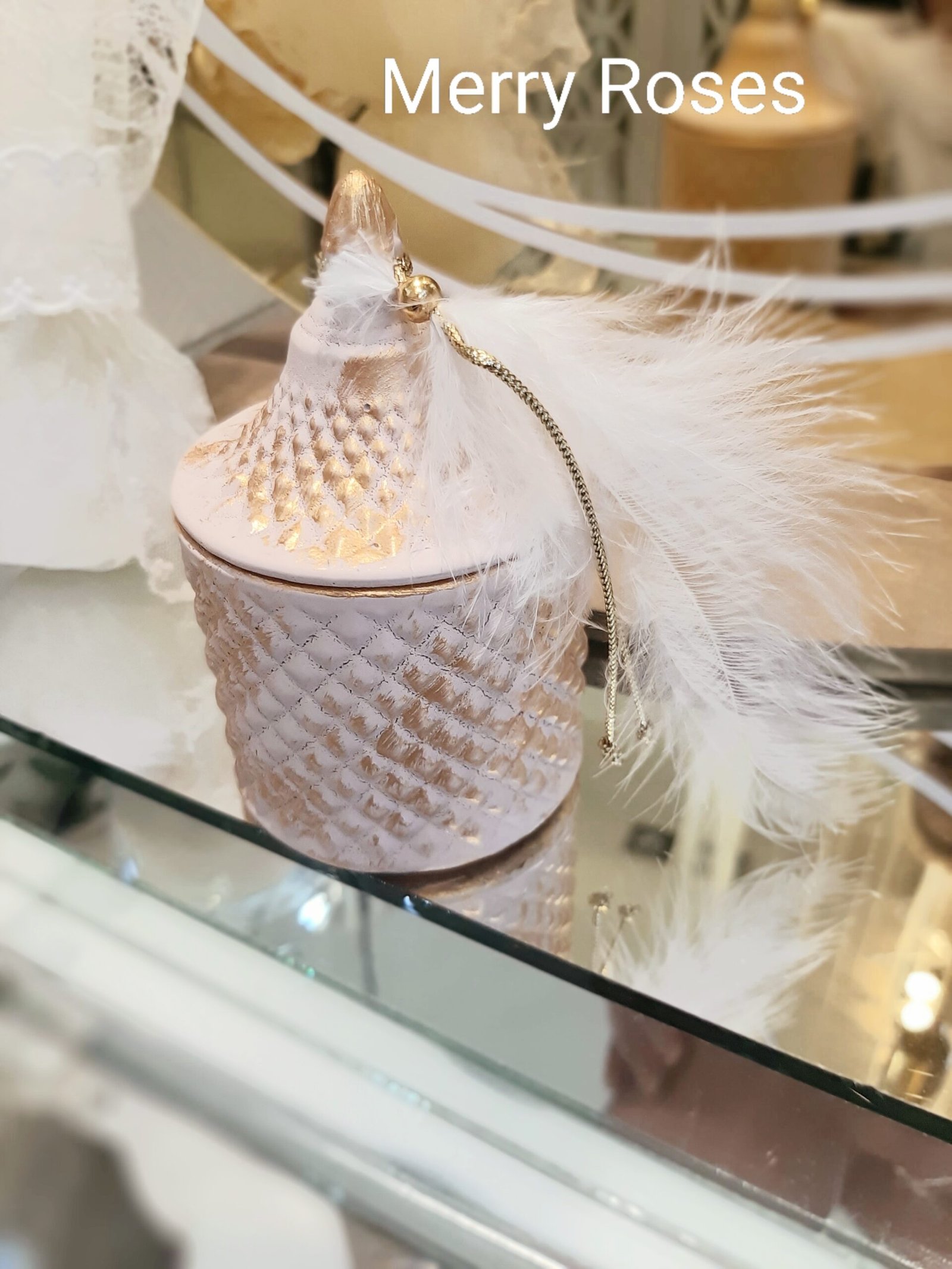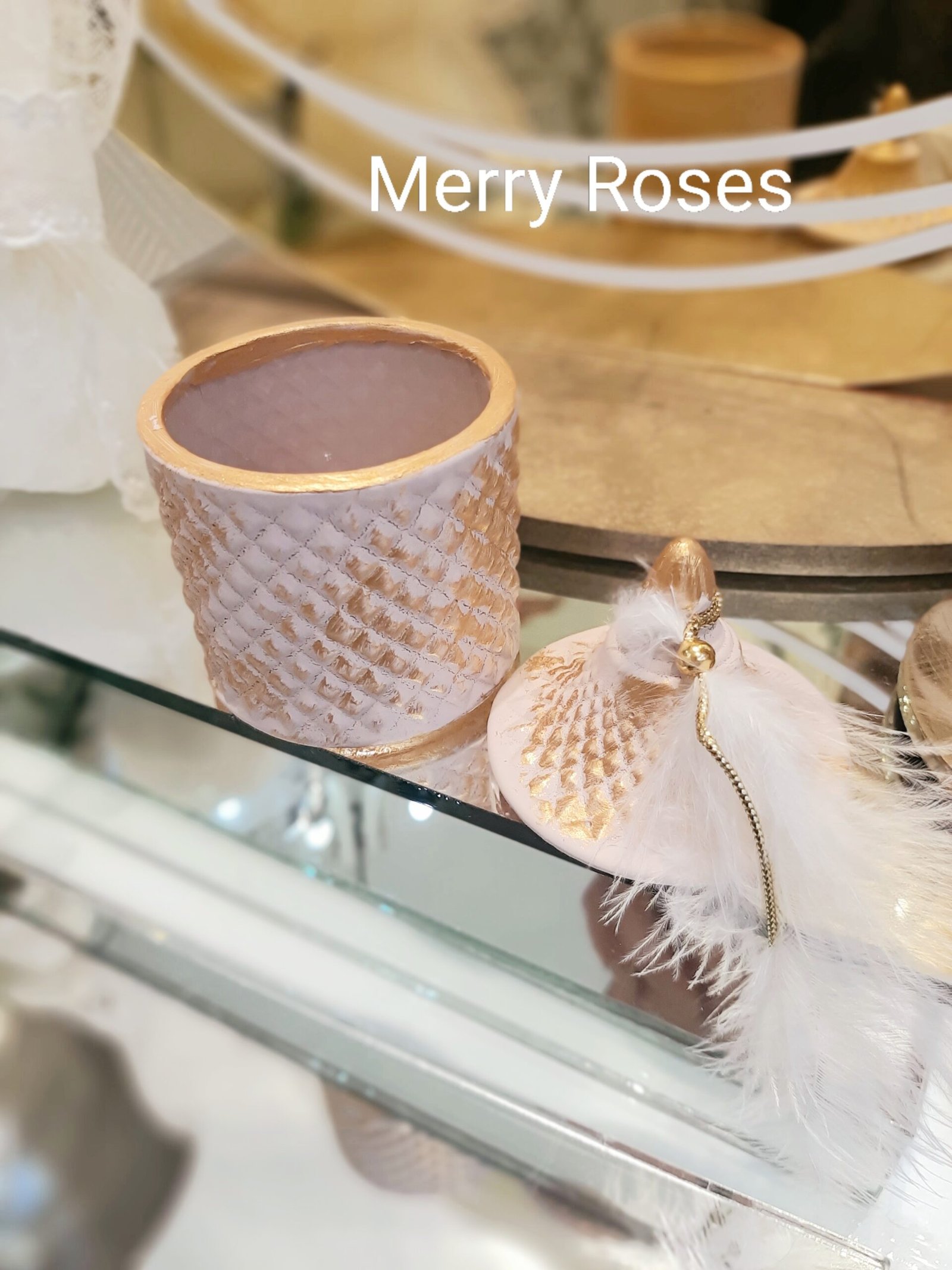 Μπομπονιέρα Φοντανιέρα Ρόζ με Πούπουλο