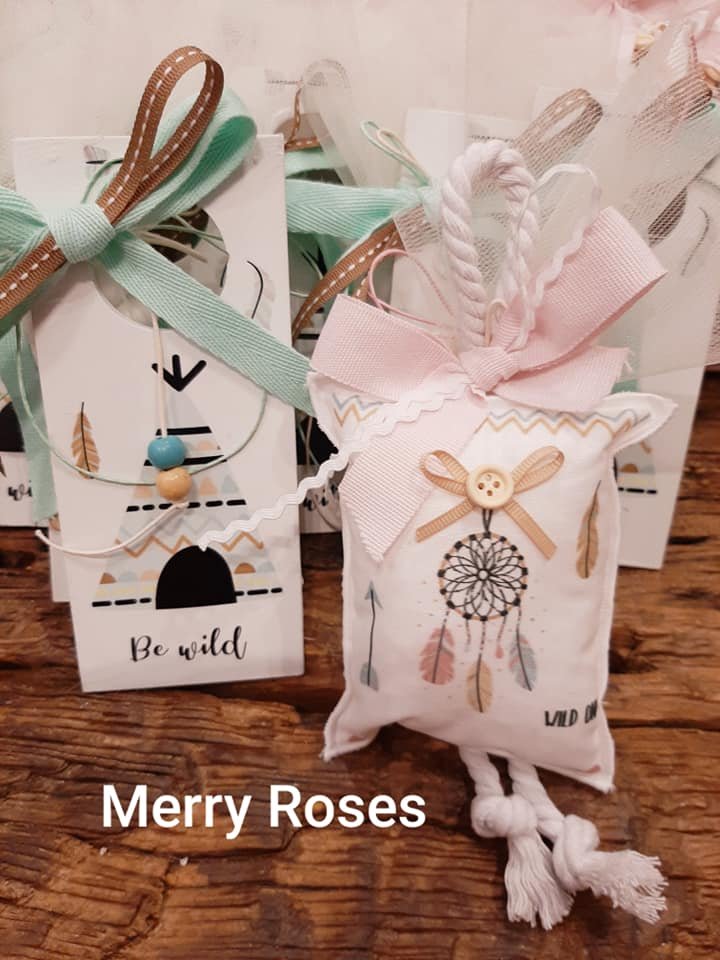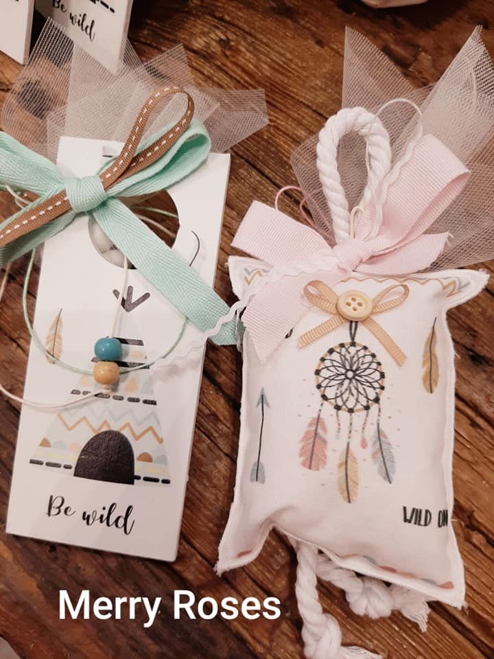 Μπομπονιέρες Βάπτισης με ινδιάνικο θέμα για αδελφάκια διδυμάκια.