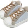 Δετά τρίχρωμα sneakers από συνθετικό δέρμα και ύφασμα, σε χρώμα λευκό-γκρί-ταμπά