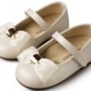 Βαπτιστικό παπουτσάκι ανατομικό της εταιρίας Babywalker για κορίτσι. Γοβάκι από ματ συνθετικό δέρμα, με σατέν φιόγκο και χρυσή λεπτομέρεια, σε χρώμα ΕΚΡΟΥ. Διαθέσιμο σε μέγεθος 19 έως και 26.