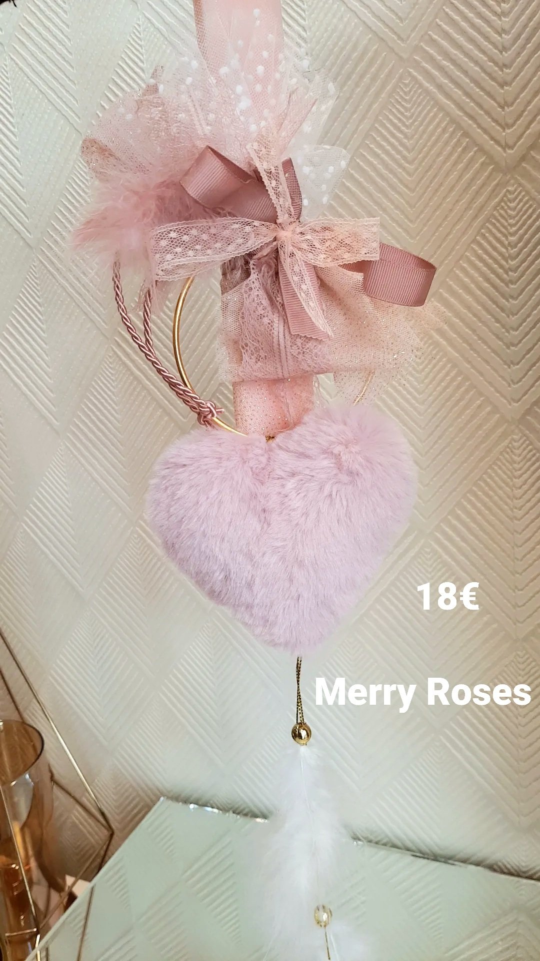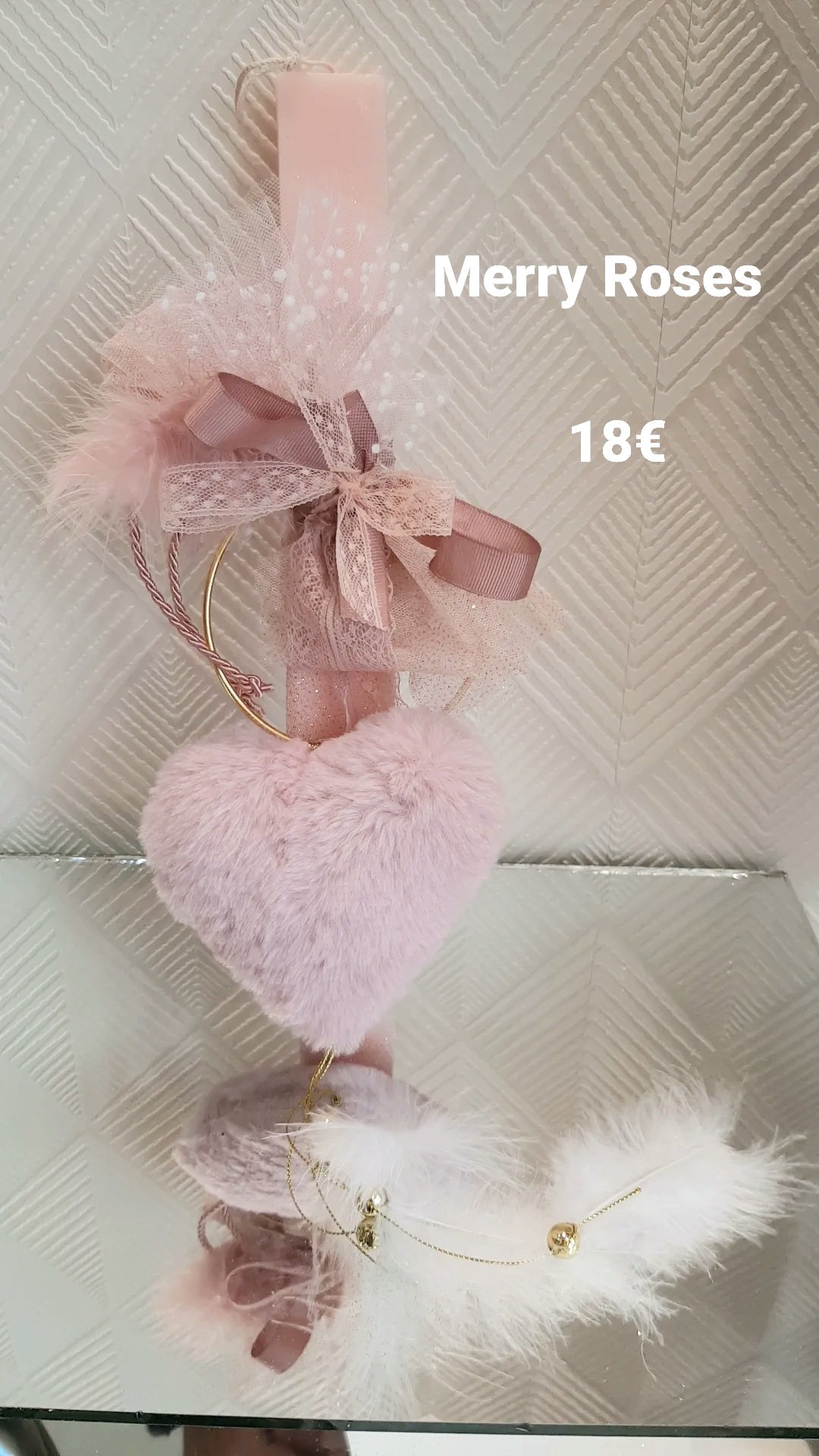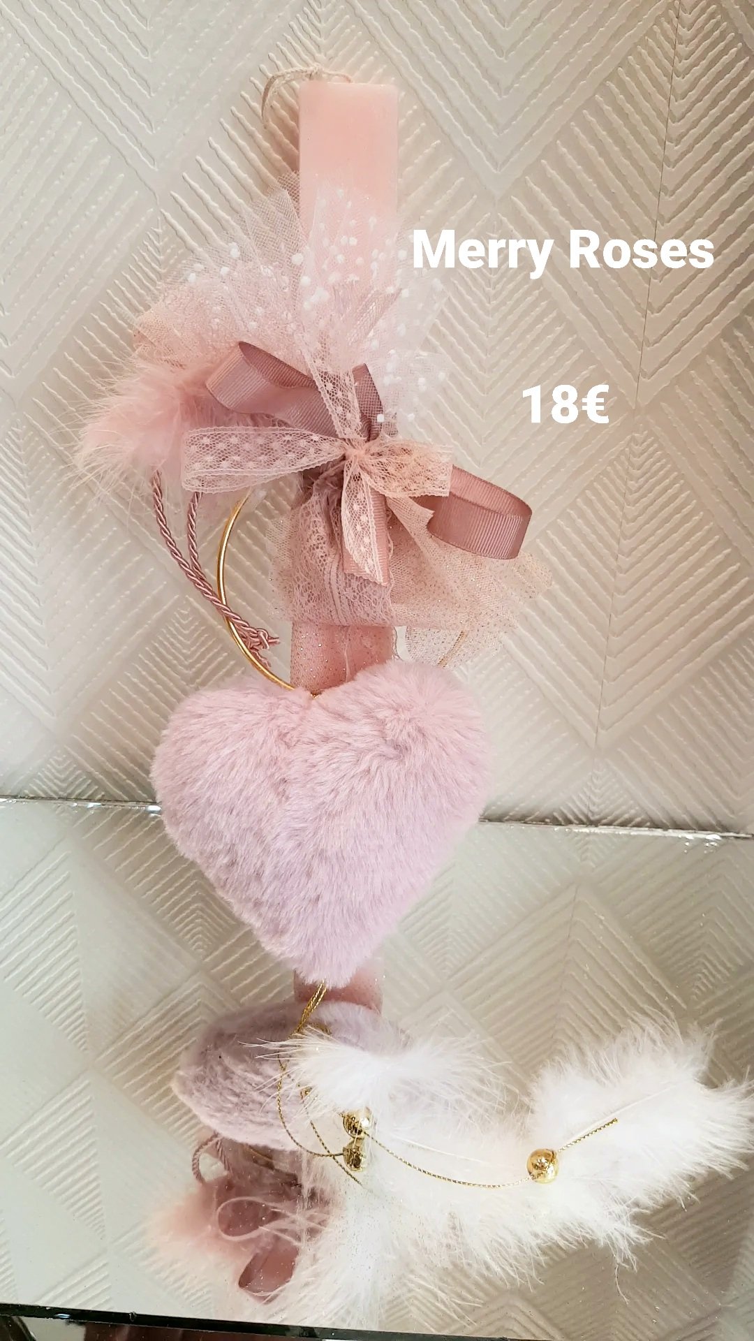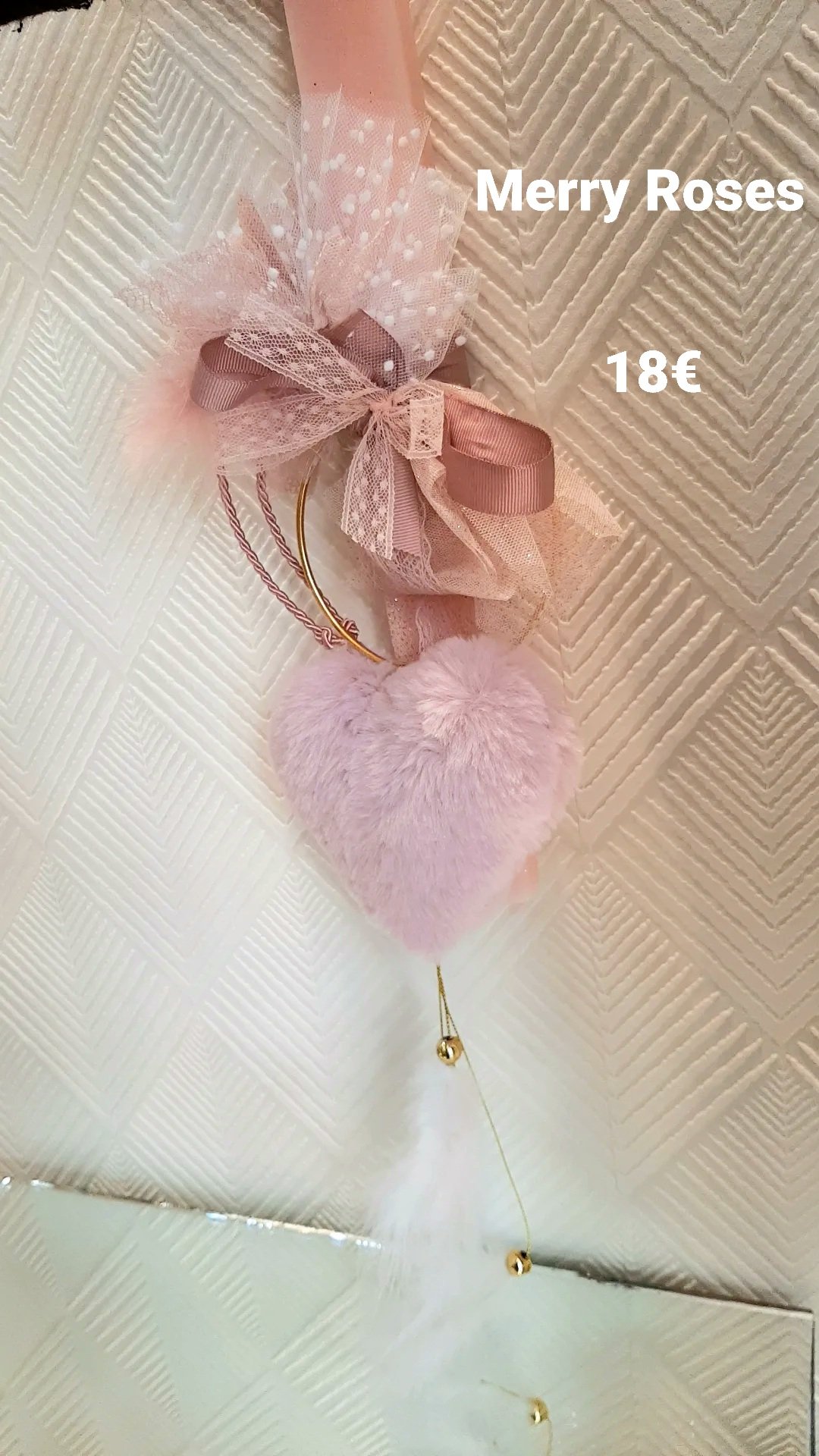 Παραμυθένια Αρωματική Πασχαλινή Λαμπάδα με καρδιά διακοσμητική σε χρυσό στεφάνι κρεμαστό.