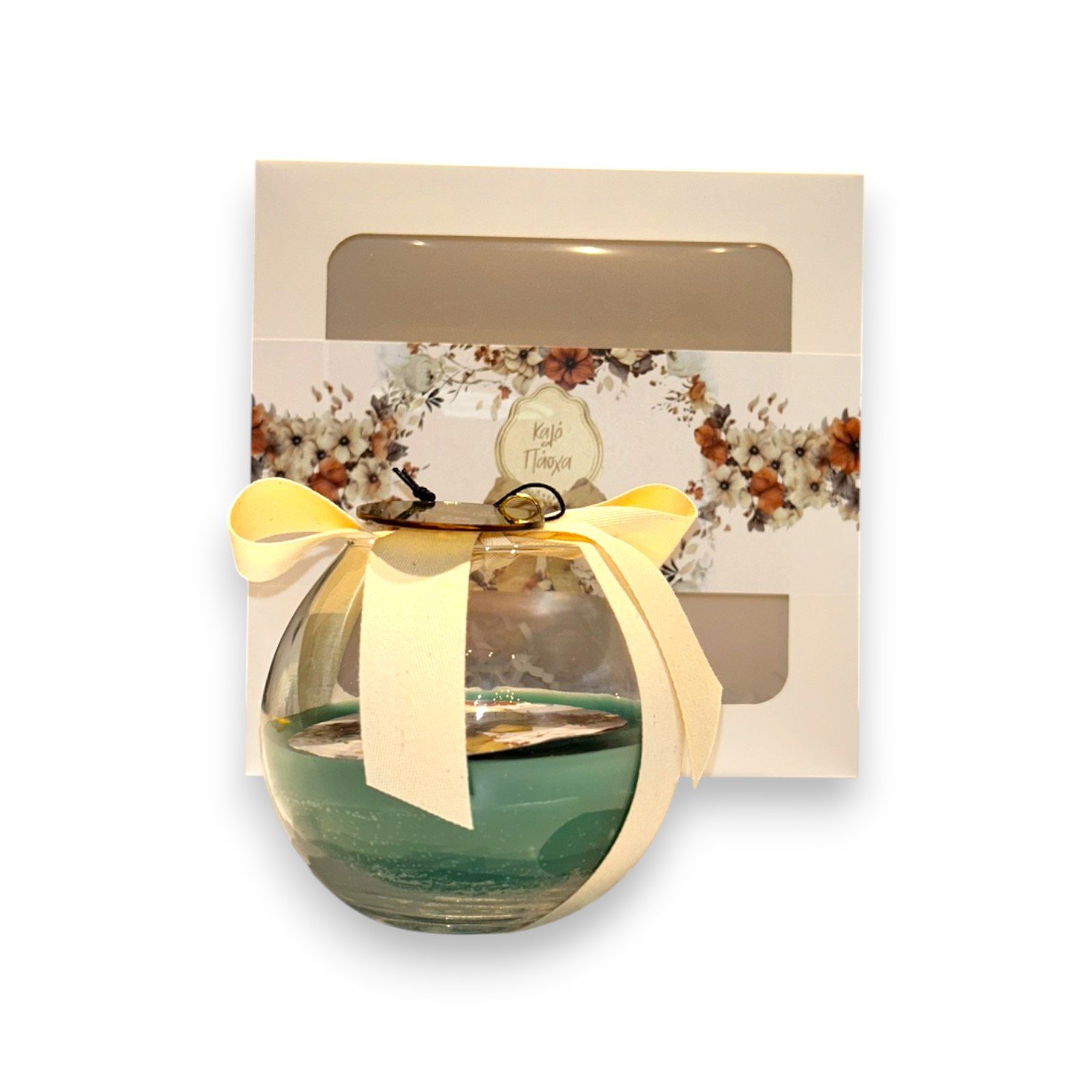 Κομψό αρωματικό κερί σε στρογγυλό γυάλινο βάζο τύπου bubble, ιδανικό για δώρο και εποχιακές συλλογές. Ο minimal σχεδιασμός, σε συνδυασμό με τη διακριτική κορδέλα, το καθιστά κατάλληλο για καταστήματα δώρων, concept stores και premium πασχαλινές προτάσεις.