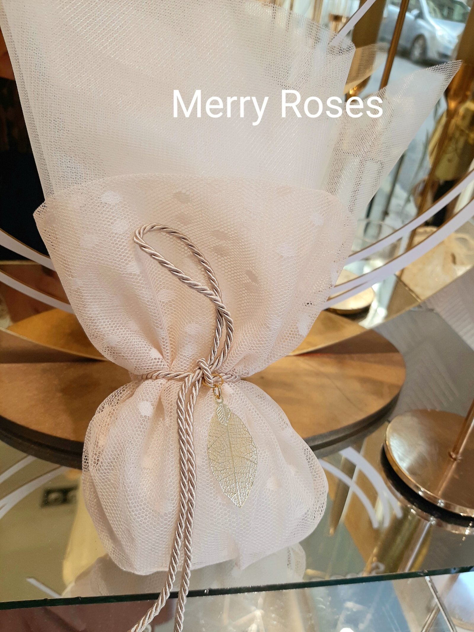 Τούλινο πουά πουγκί μπέζ 8×13 εκ
