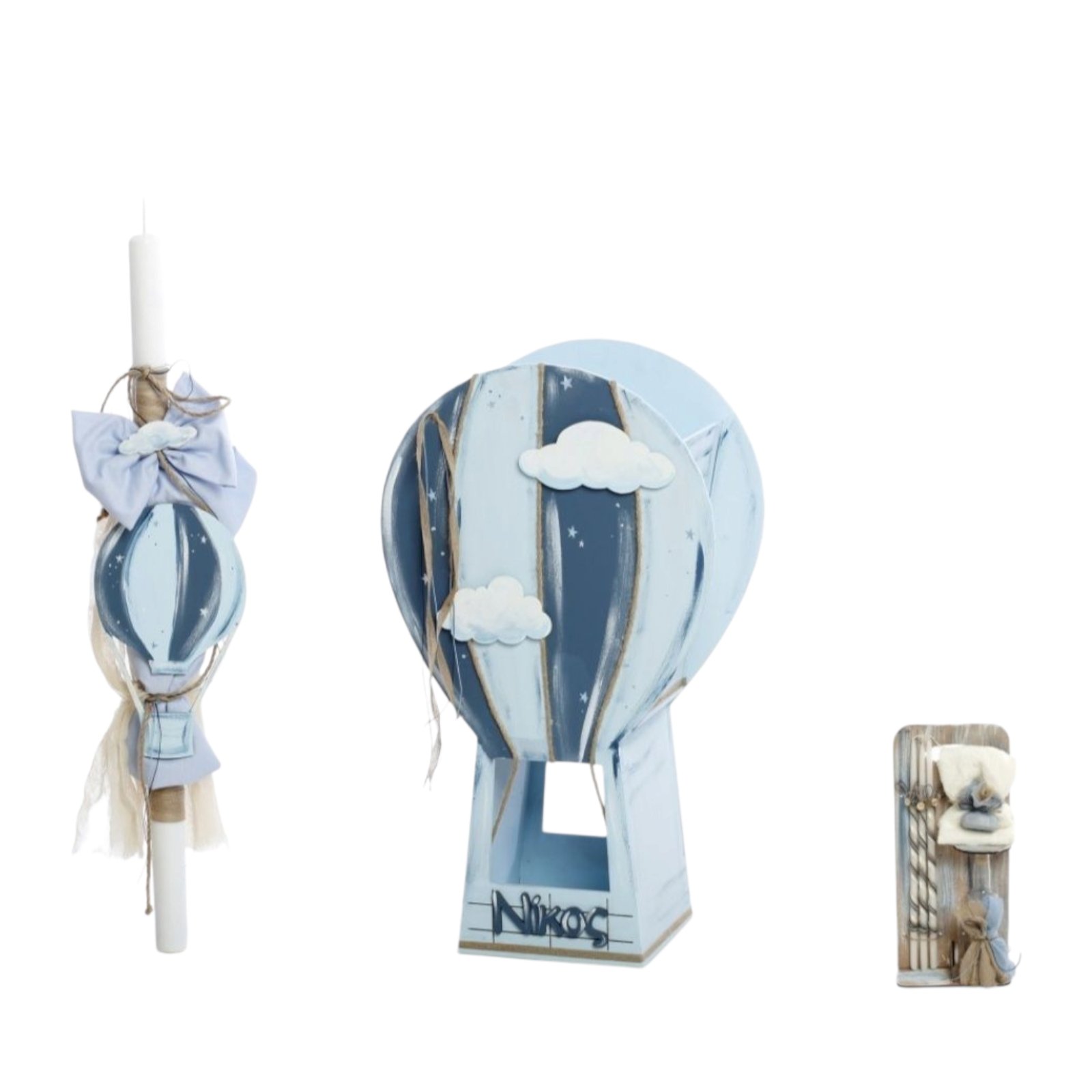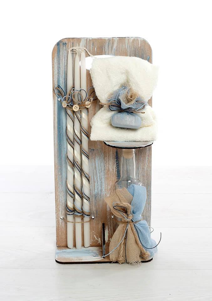 Λαδοσέτ σε ξύλινο σταντ (3 κεράκια κολυμπήθρας,σαπουνάκι,πετσετούλα μικρή χεριών)