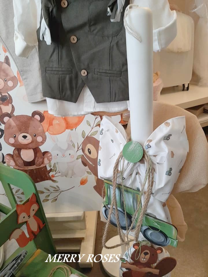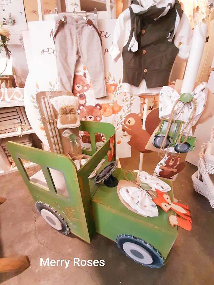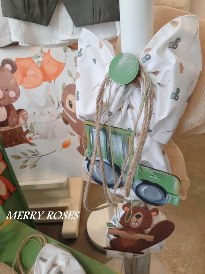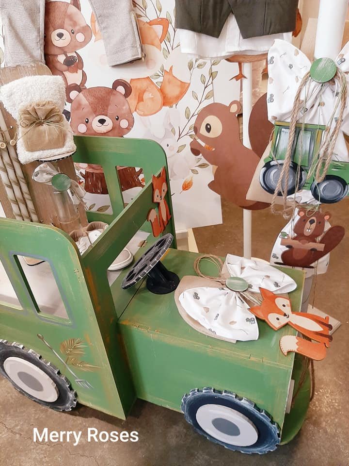 Σετ βάπτισης με θέμα τρακτέρ και ζωάκια του δάσους