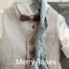 Η νέα πρόταση μέντας της ΒΑΒΥ ΒLOOM σετ 7 τεμαχίων που το χαρακτηρίζει η απόχρωση βεραμάν στο παντελόνι. Το πουκάμισο που έχει επιλέγει είναι λευκό λινό και το γιλέκο είναι μπεζ ψάθα διπλό με κούμπωμα μπροστά. Στο σετ περιλαμβάνονται επίσης τιράντες, ξύλινο παπιγιόν, δίχρωμο φουλάρι και ψάθινο καπέλο ή μπερές.