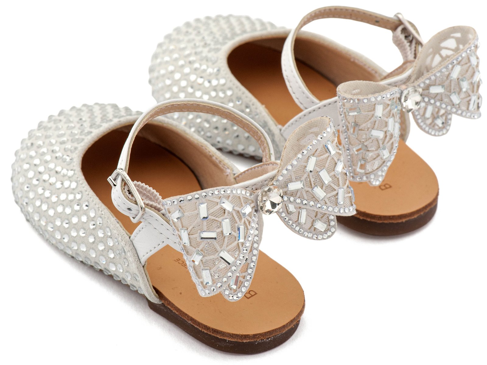Δερμάτινο Σαμπό Διακοσμημένο Ολόγυρα με Στρας και Φιόγκο απο Στρας στη Φτέρνα σε Λευκό Χρώμα