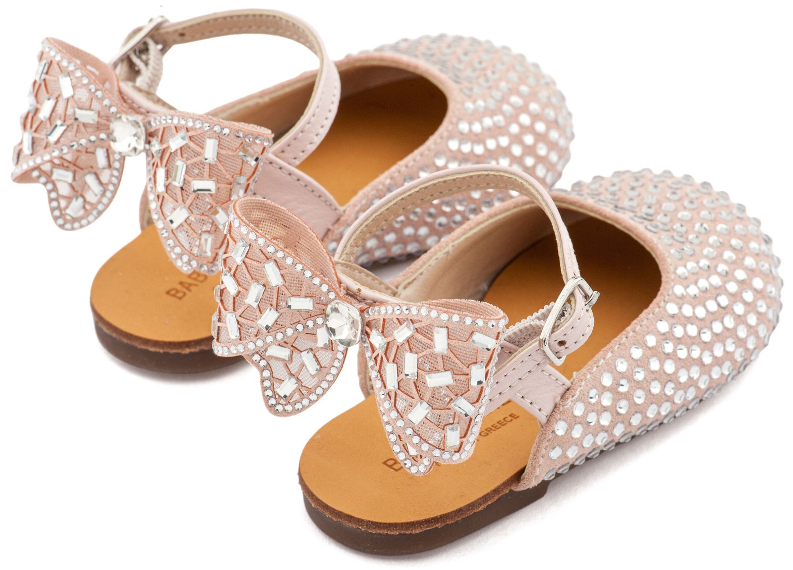 Δερμάτινο Σαμπό Διακοσμημένο Ολόγυρα με Στρας και Φιόγκο απο Στρας στη Φτέρνα σε Ροζ Αντικέ Χρώμα