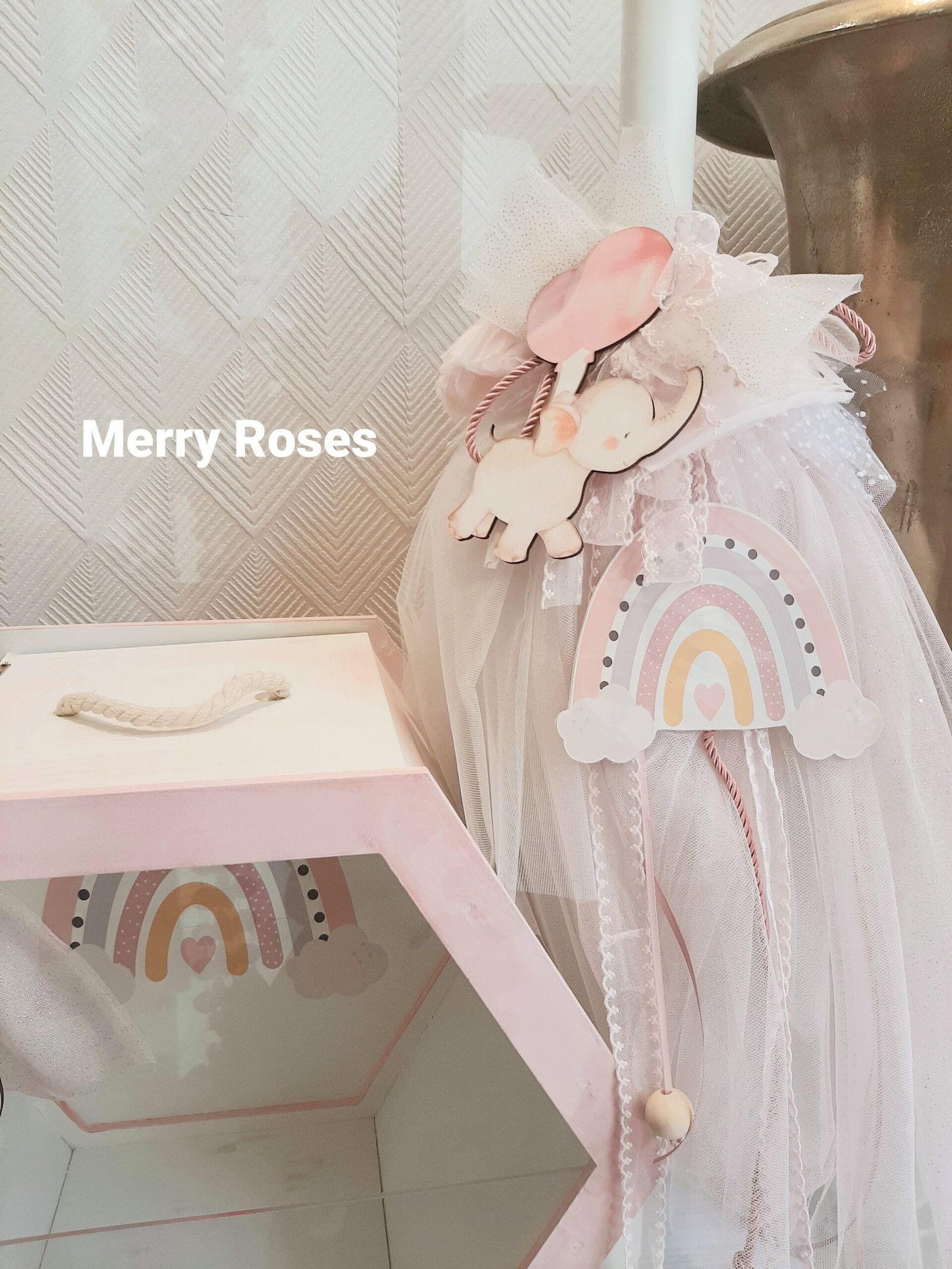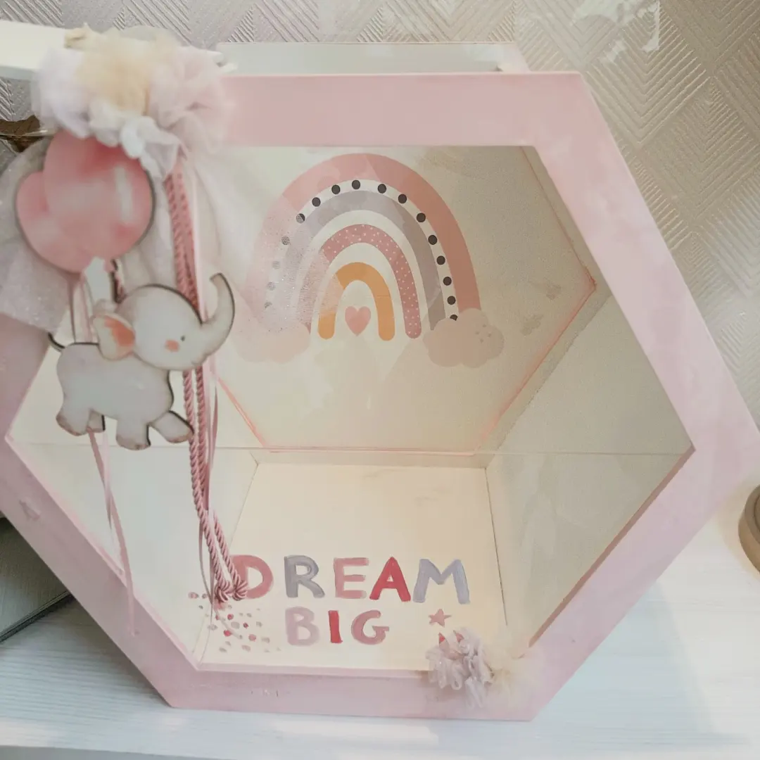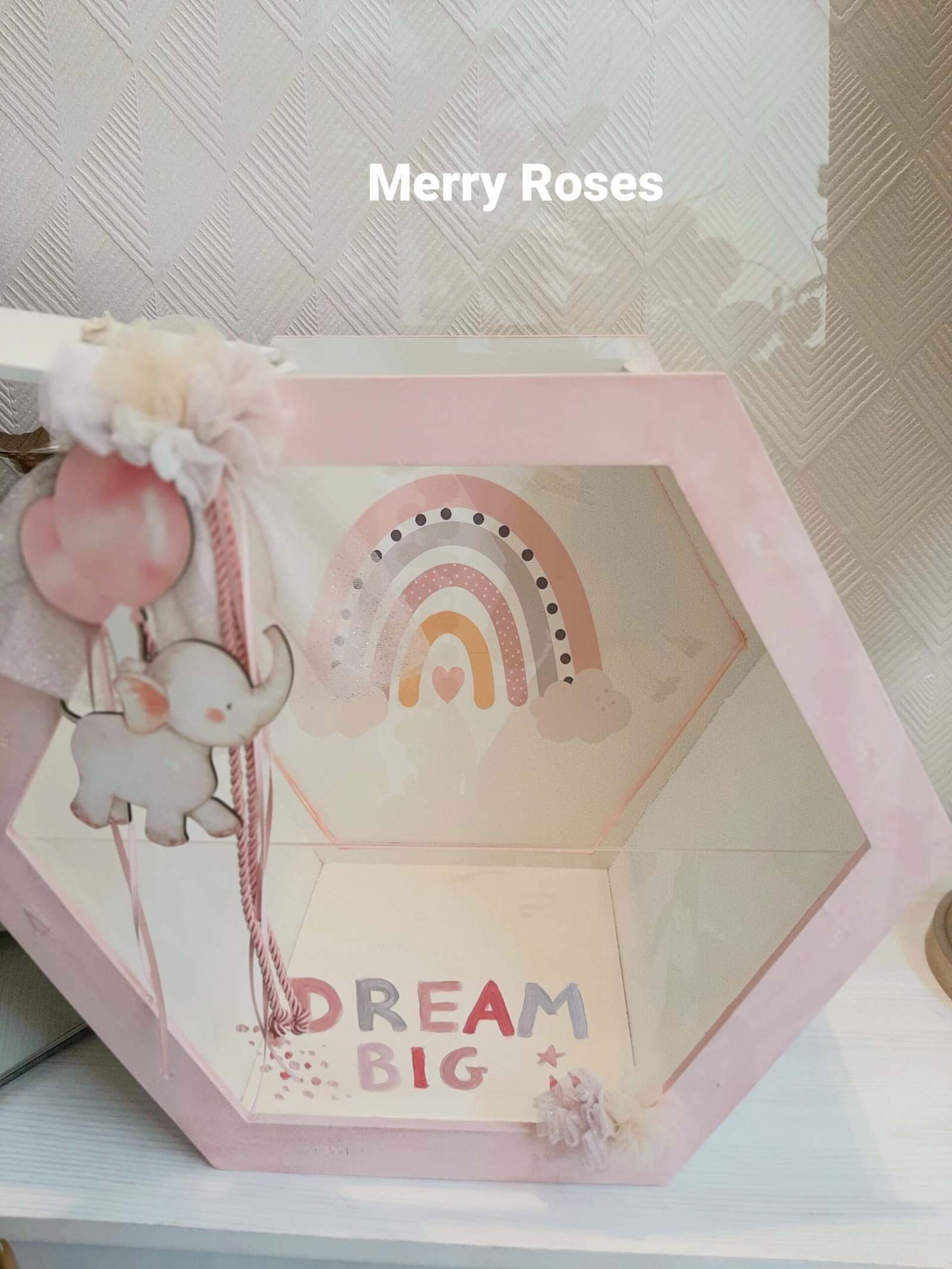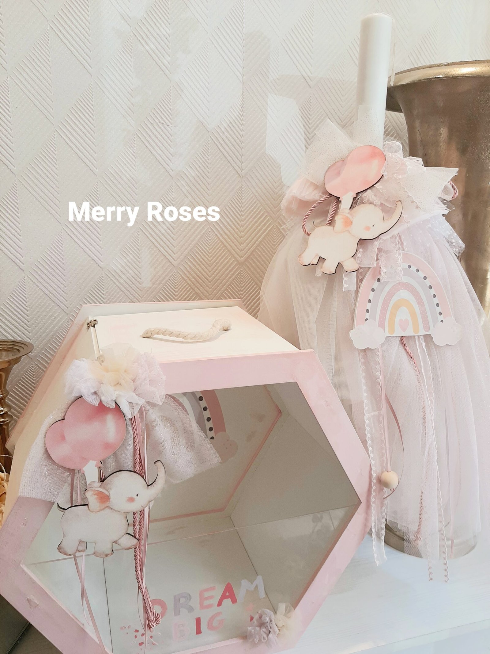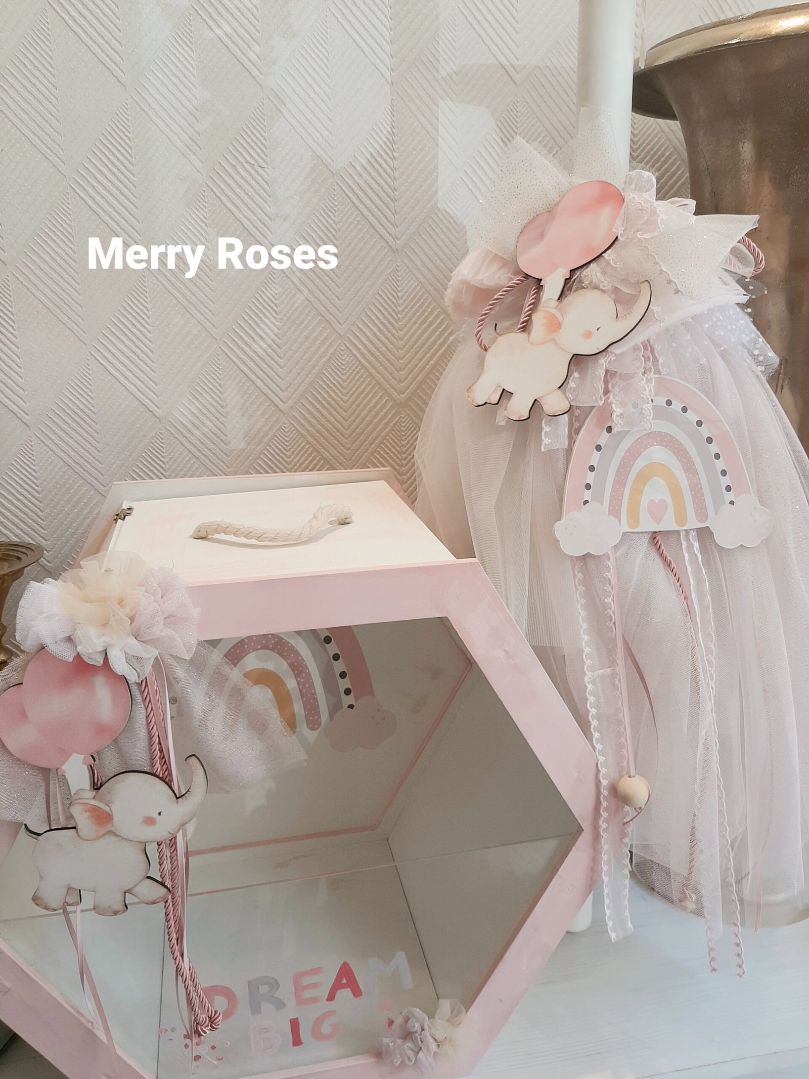 -Κουτι βάπτισης με διακοσμητικό ελεφαντάκι και ουράνιο τόξο.