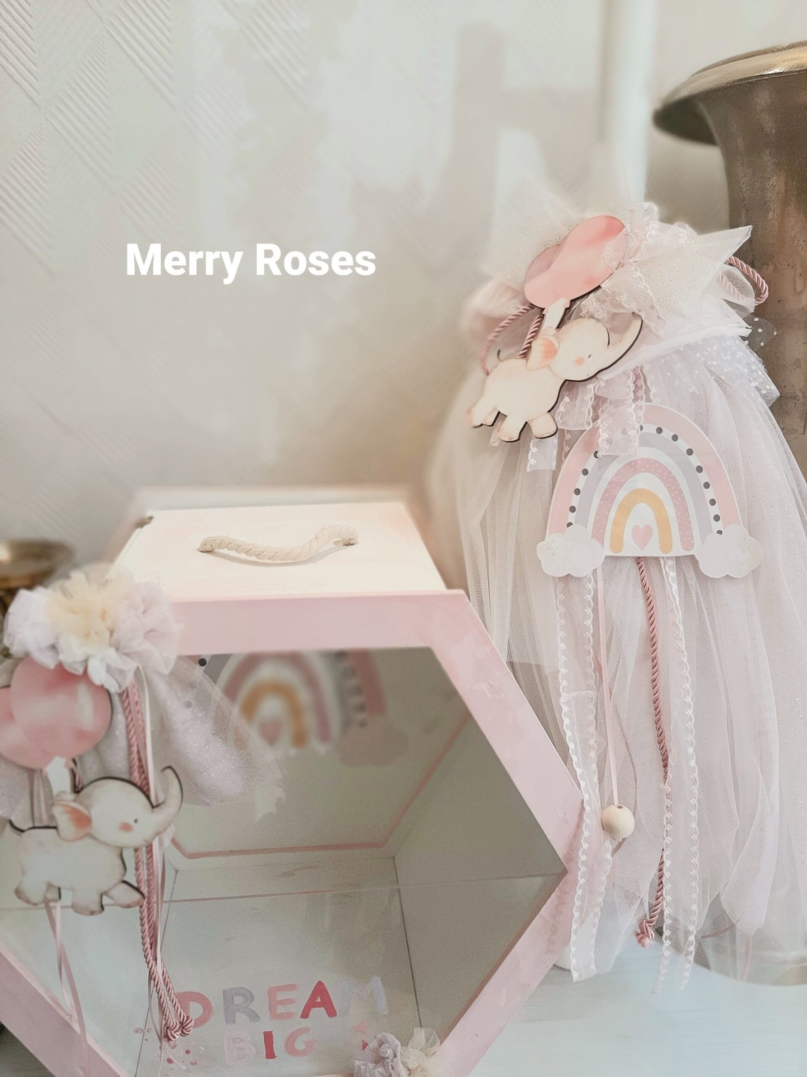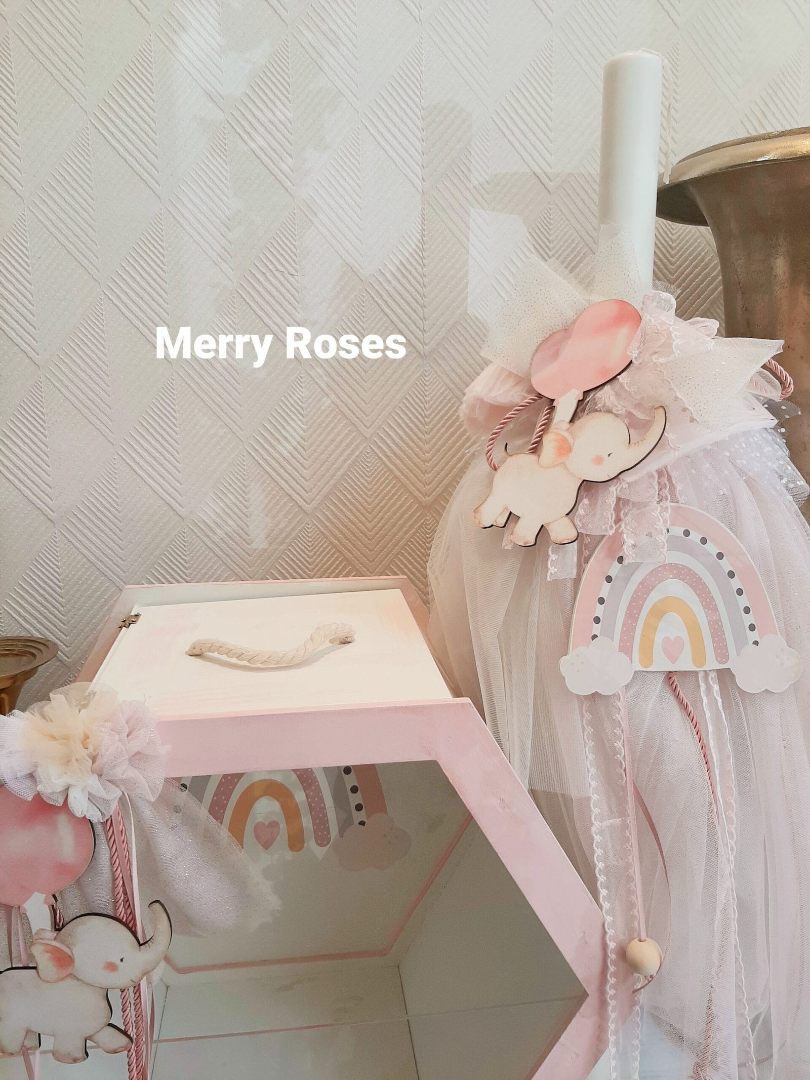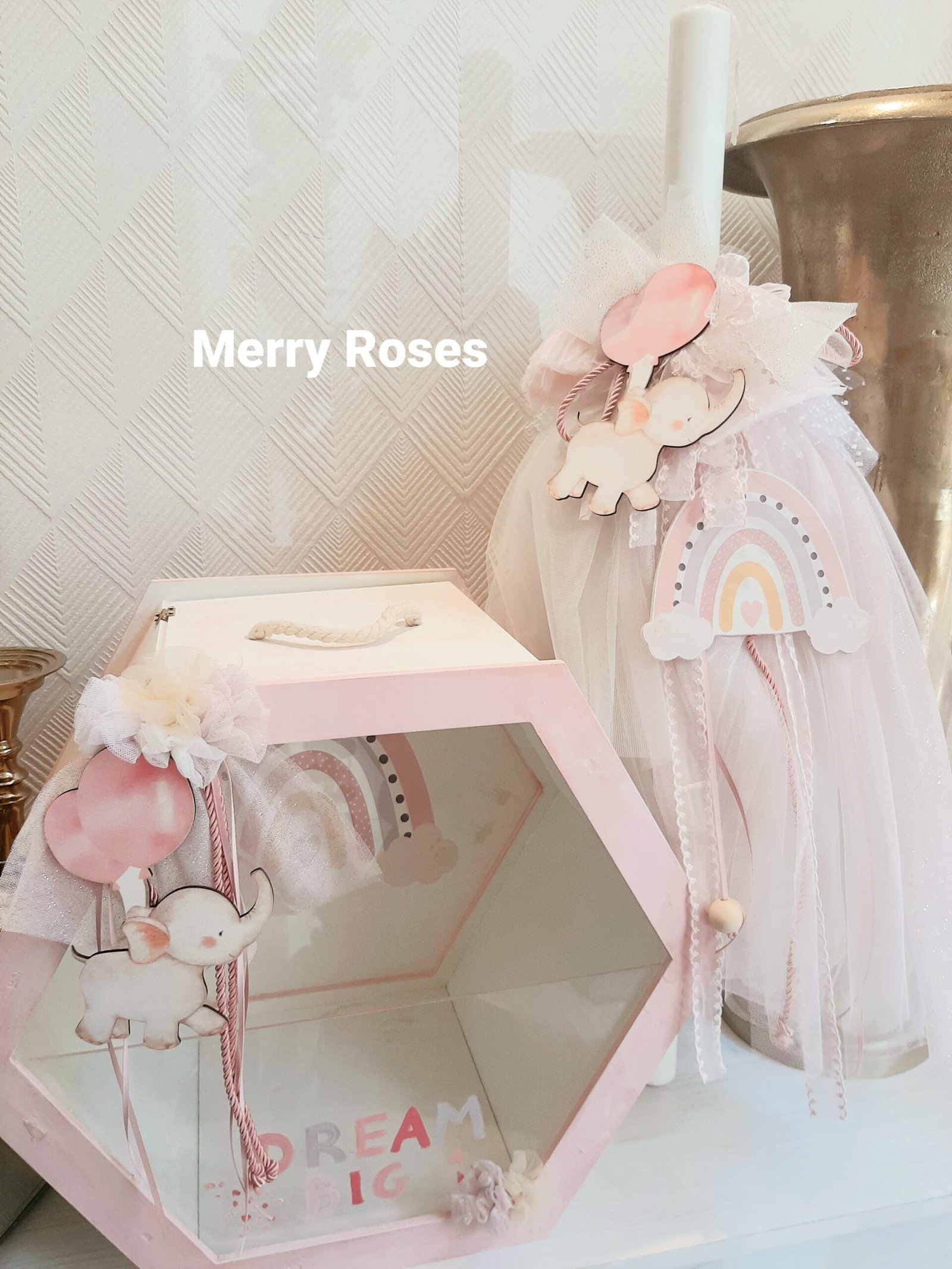 Πακέτο βάπτισης σετ για κορίτσια με εκεφαντάκι και ουράνιο τόξο.