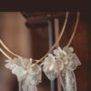 Επίχρυση βέργα γυαλιστερή πλεγμένη με μια πιο λεπτή επίχρυση βεργούλα διακοσμημένη με μεταξωτά λουλούδια στο πίσω μέρος.