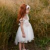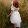 Ρομαντικό φόρεμα βάπτισης Baby Bloom σε ιβουάρ απόχρωση με ιδιαίτερη ανάγλυφη δαντέλα στην μέση και στο τελείωμα . Χειροποίητο λουλούδι που στολίζει τη μέση του φορέματος και μεγάλος φιόγκος στο πίσω μέρος . Εσωτερική επένδυση από μαλακό βαμβακερό ύφασμα. Ασορτί κορδέλα με το ίδιο λουλούδι του φορέματος και κατ’ επιλογή μπαντάνα ή τουρμπάνι .