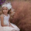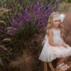 Ρομαντικό φόρεμα Βάπτισης σε light απόχρωση κυκλάμινο , το κορσάζ αποτελείται από ανάγλυφη δαντέλα με επένδυση τούλι και μαλακό βαμβακερό ύφασμα , διαφάνεια στο πίσω μέρος του φορέματος και στον ώμο σχηματίζεται βολάν από τα ίδια τούλια του φορέματος όπως και στη φούστα. Ένα φόρεμα που ολοκληρώνεται με ένα υπέροχο χειροποίητο λουλούδι στη μέση και μεγάλο τούλινο φιόγκο στο πίσω μέρος.