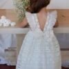 Βαπτιστικό Φόρεμα Baby Bloom , ένα «μικρό νυφικό», σχεδιασμένο με απλικέ δανδέλα σε όλο το μήκος του φορέματος. Όλο το φόρεμα είναι κεντημένο με μεγάλο άνοιγμα στην πλάτη και διαφάνεια στο μπροστινό μέρος. Εσωτερικά υπάρχει μαλακό βαμβακερό ύφασμα. Το κορσάζ του φορέματος στολίζει πυκνό τούλι που συνεχίζει μέχρι την μέση και καλύπτει τον ώμο του παιδιού. Διατίθεται με κορδέλα ασορτί με το φόρεμα και κατ’ επιλογή μπαντάνα η τουρμπάνι.