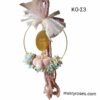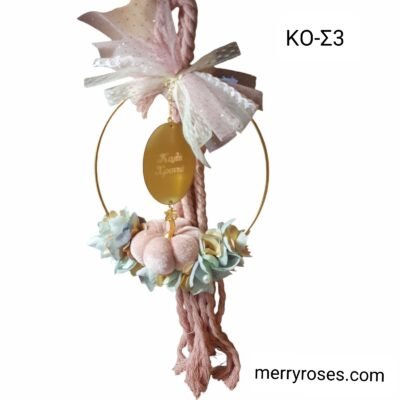 Βελούδινη κολοκύθα ροζ ,σε χρυσό στεφάνι ,κρεμαστό διακοσμητικό μαζί με χρυσό καλή χρονιά.