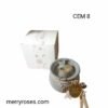 Κερί αρωματική παραφίνη 130 γρ σε τσιμεντένιο δοχείο,χριστουγεννιάτικη κάρτα με γούρι 25, και κουτί συσκευασίας δώρου.
