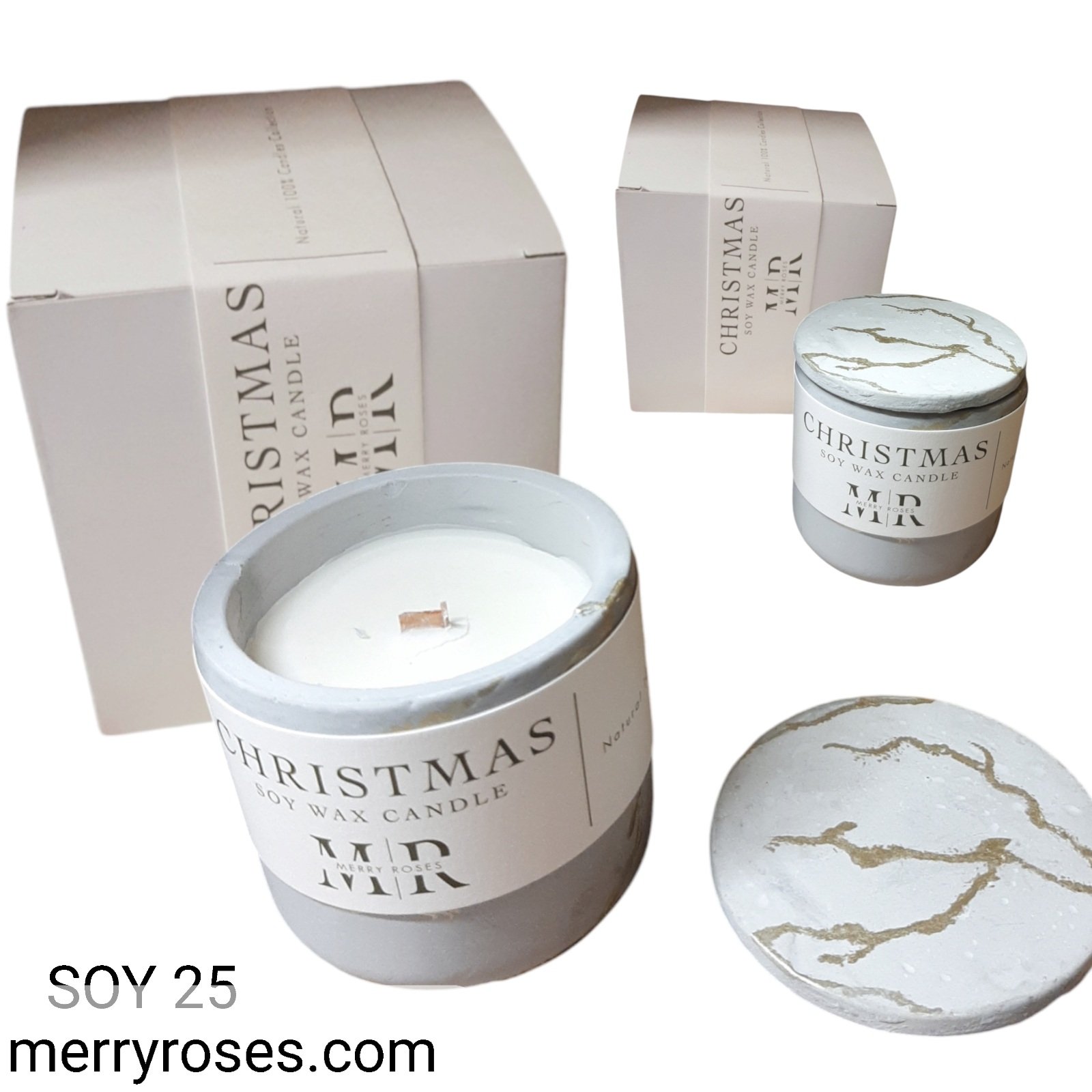 Κερί σόγιας 100 γρ σε τσιμεντένιο δοχείο με καπάκι και κουτί συσκευασίας δώρου.
