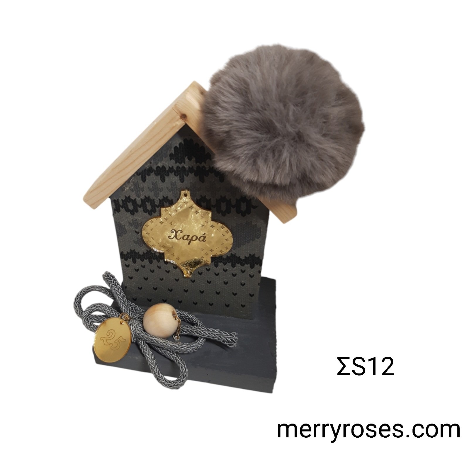 Χριστουγεννιάτικο διακοσμητικό σπιτάκι με χρυσό plexi χαρά και γούνα