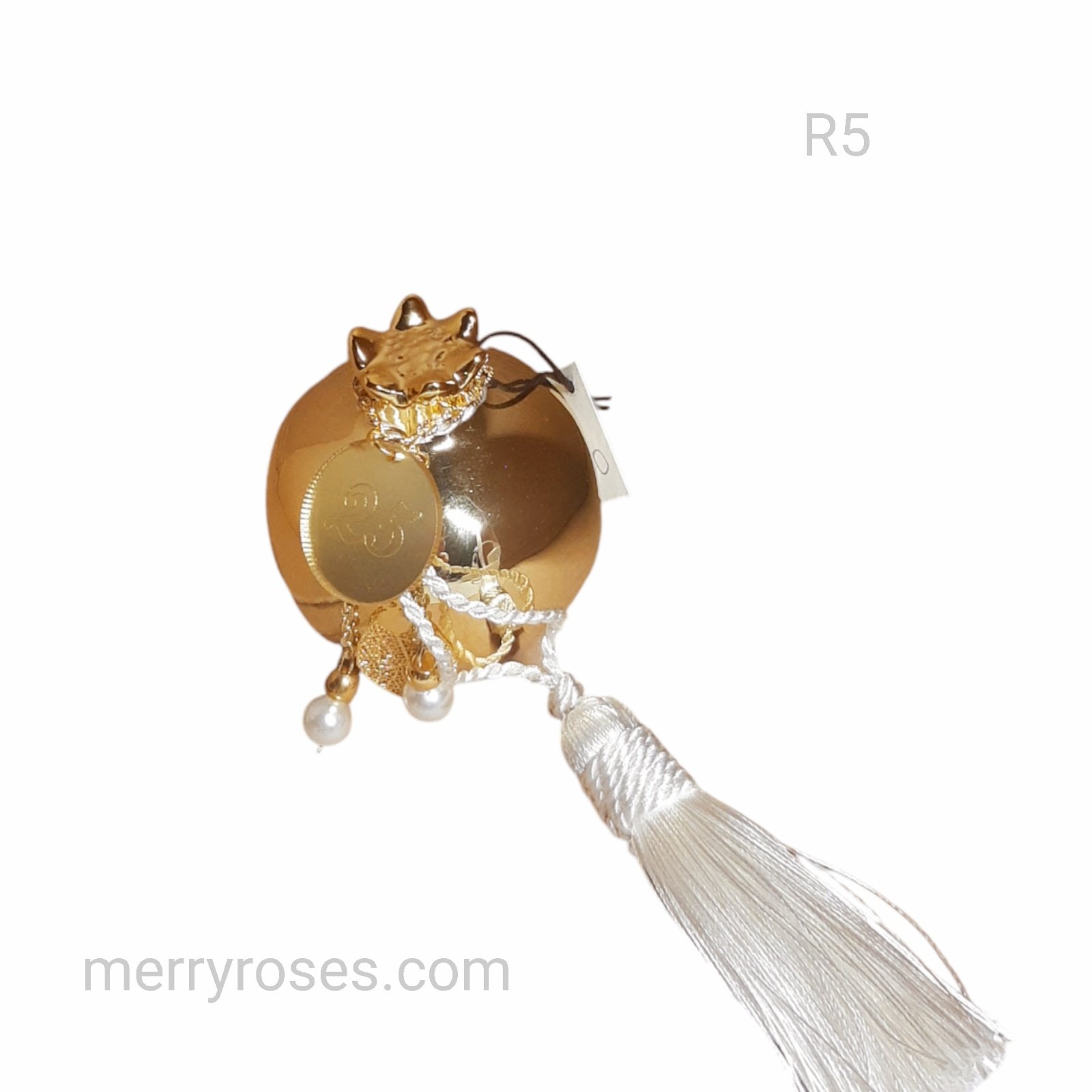 Χρυσό κεραμικό ρόδι γούρι 2025 με πλούσια φούντα σε 5 χρώματα (Μπορντώ,Λαδί,Χρυσό,Μαύρο εκρού)
