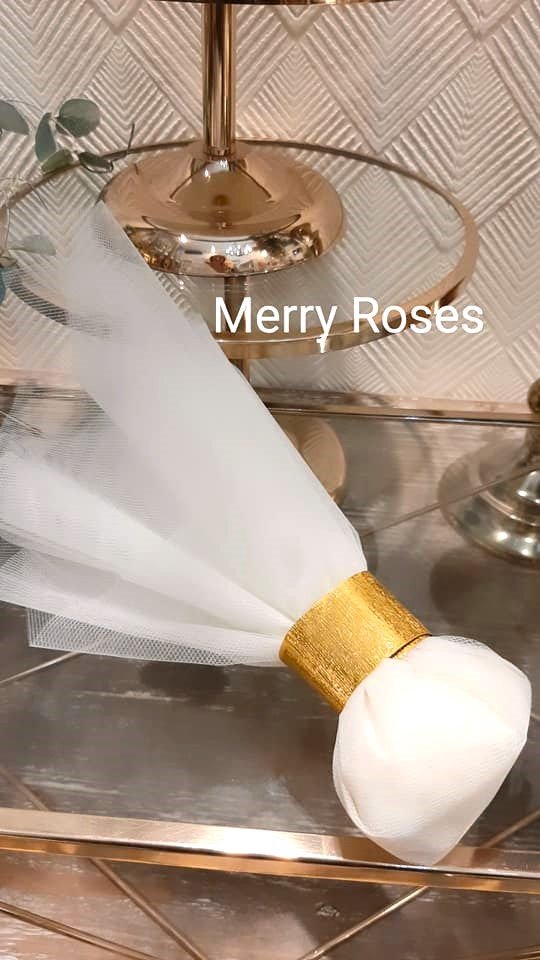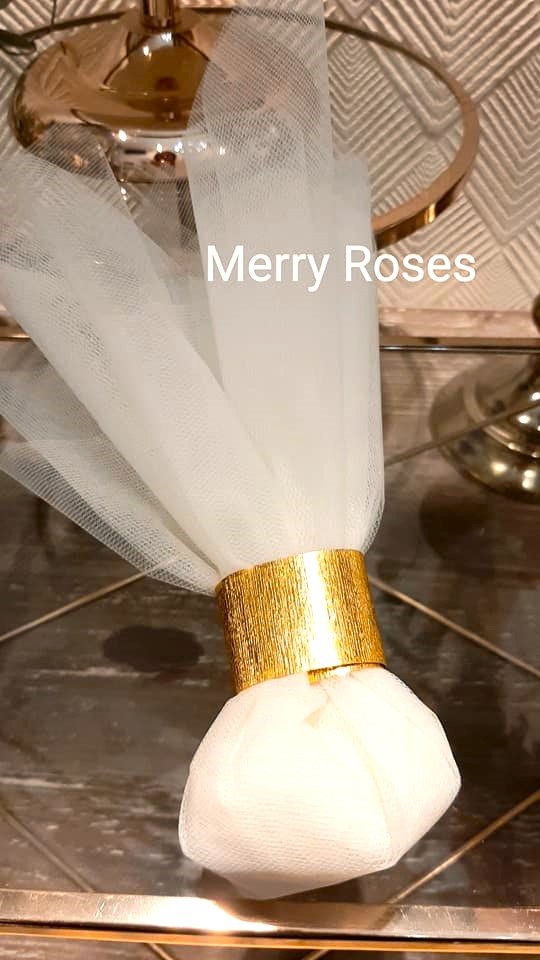 Τούλινη μπομπονιέρα γάμου με χρυσό σφυρήλατη διακοσμητική ράβδο