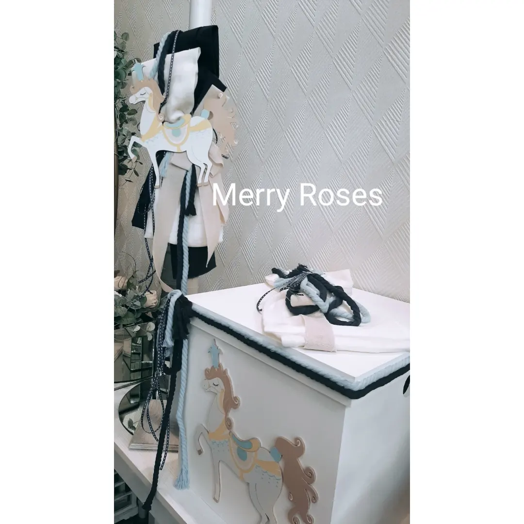 Κουτί ξύλινο 38×37 ύψος με καπάκι φορετό και διακόσμηση Καρουζέλ