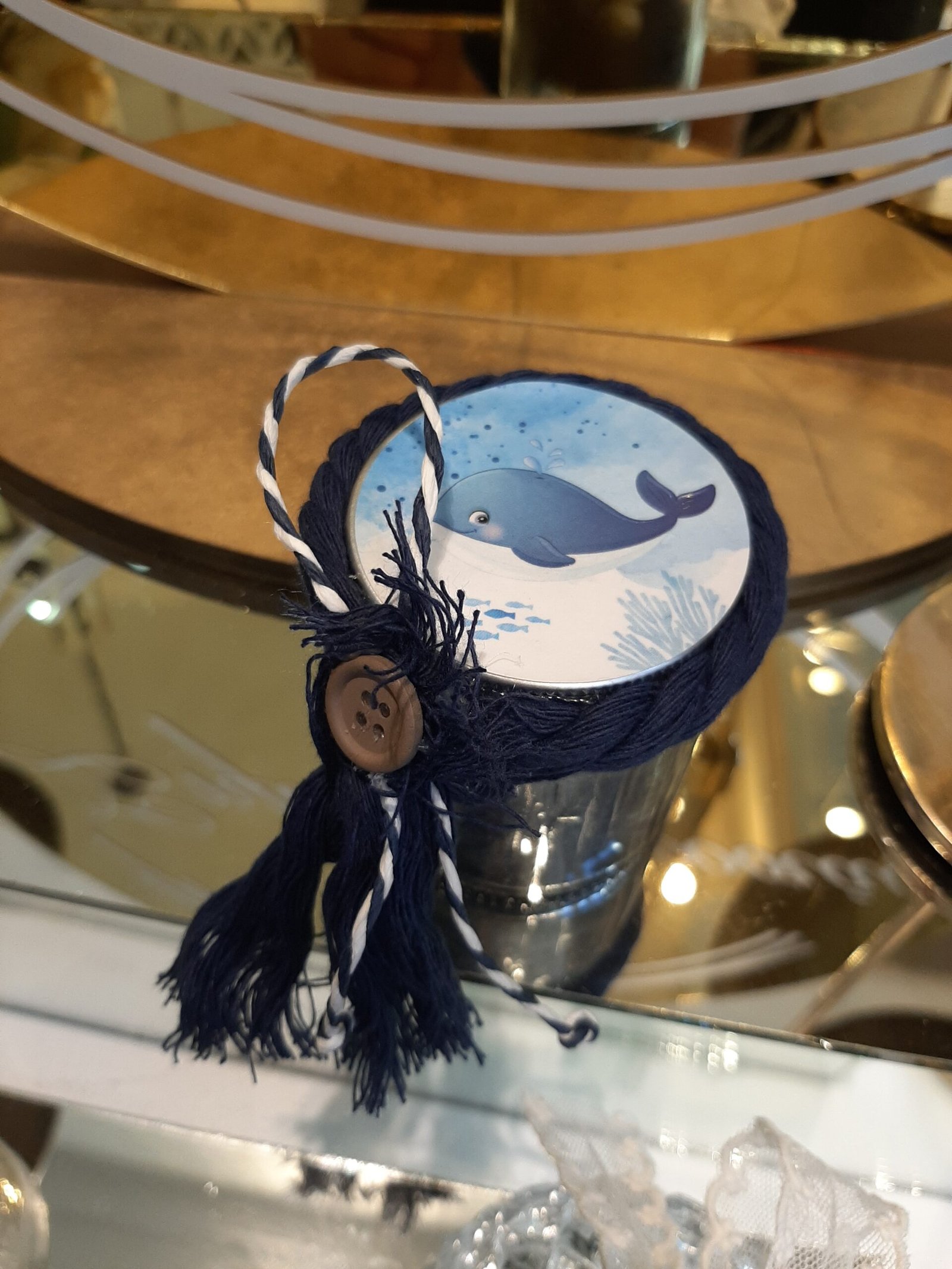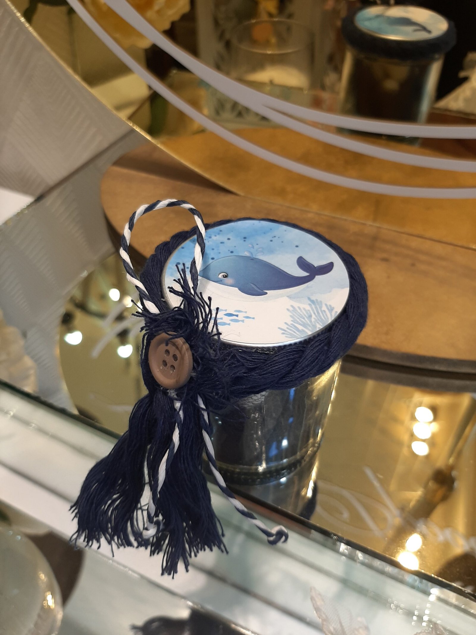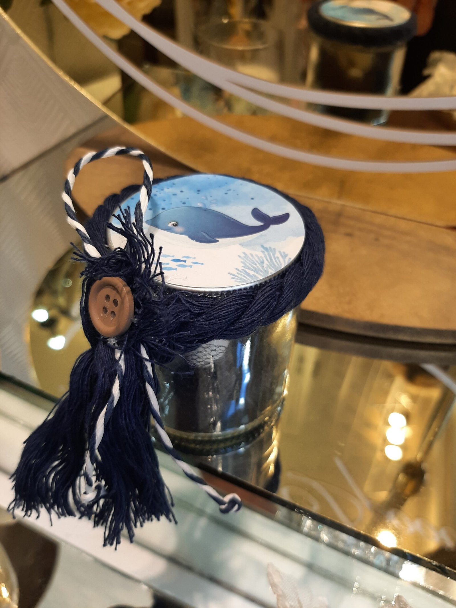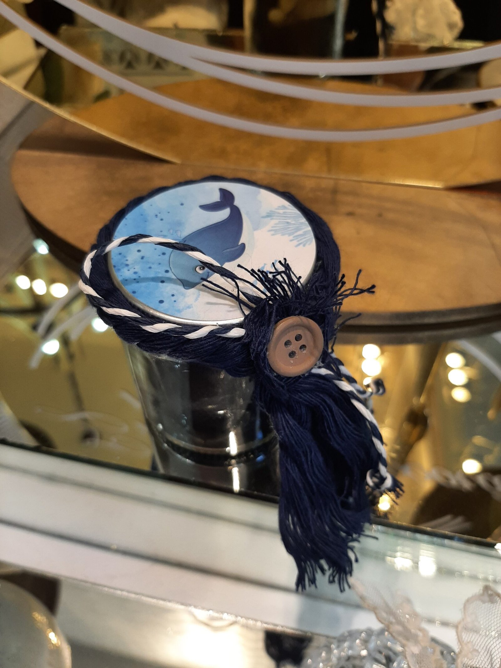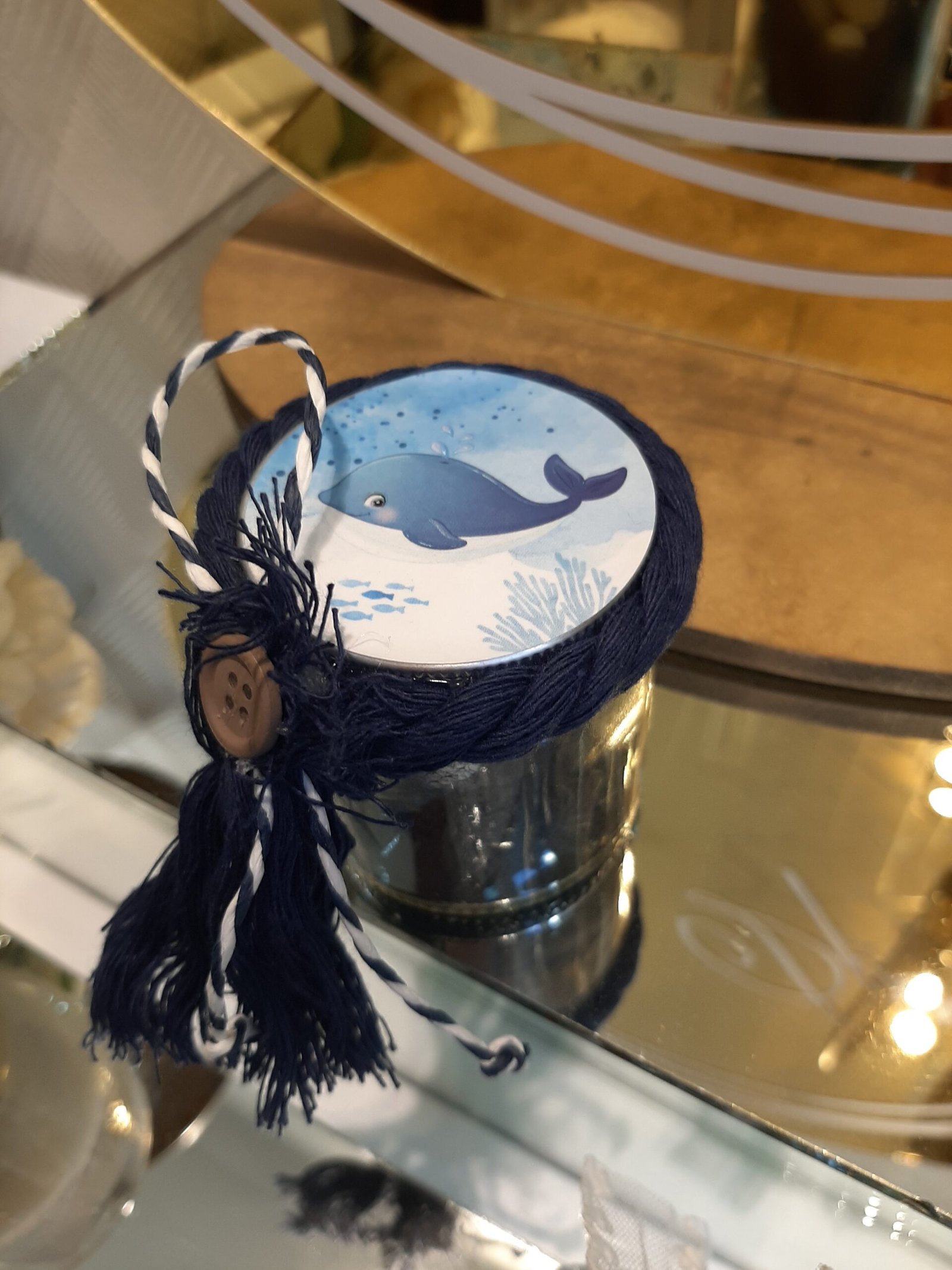 Γυάλινο βαζάκι με καπάκι δελφινάκι (προσαρμόζεται και στο δικό σας θέμα βάπτισης)
