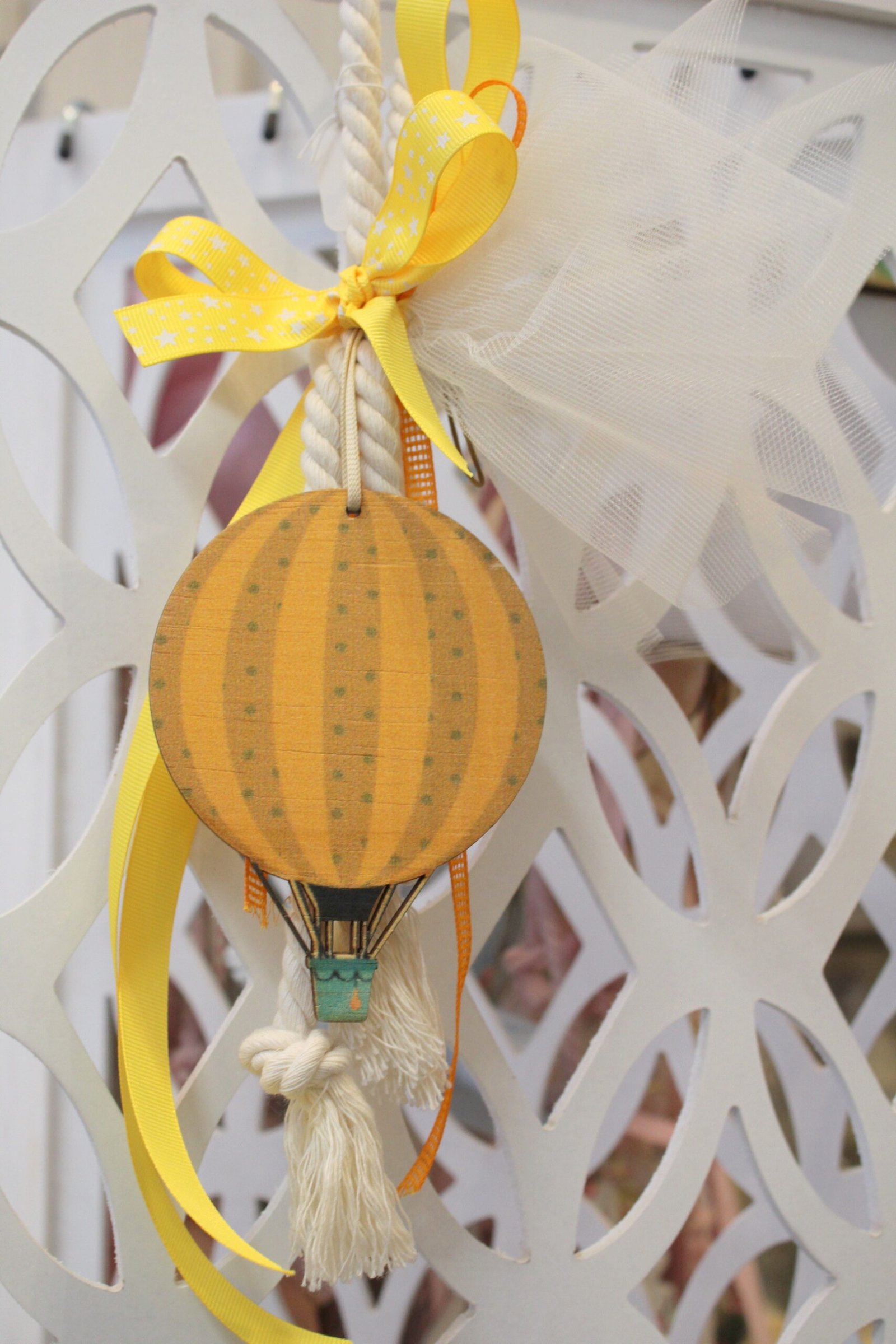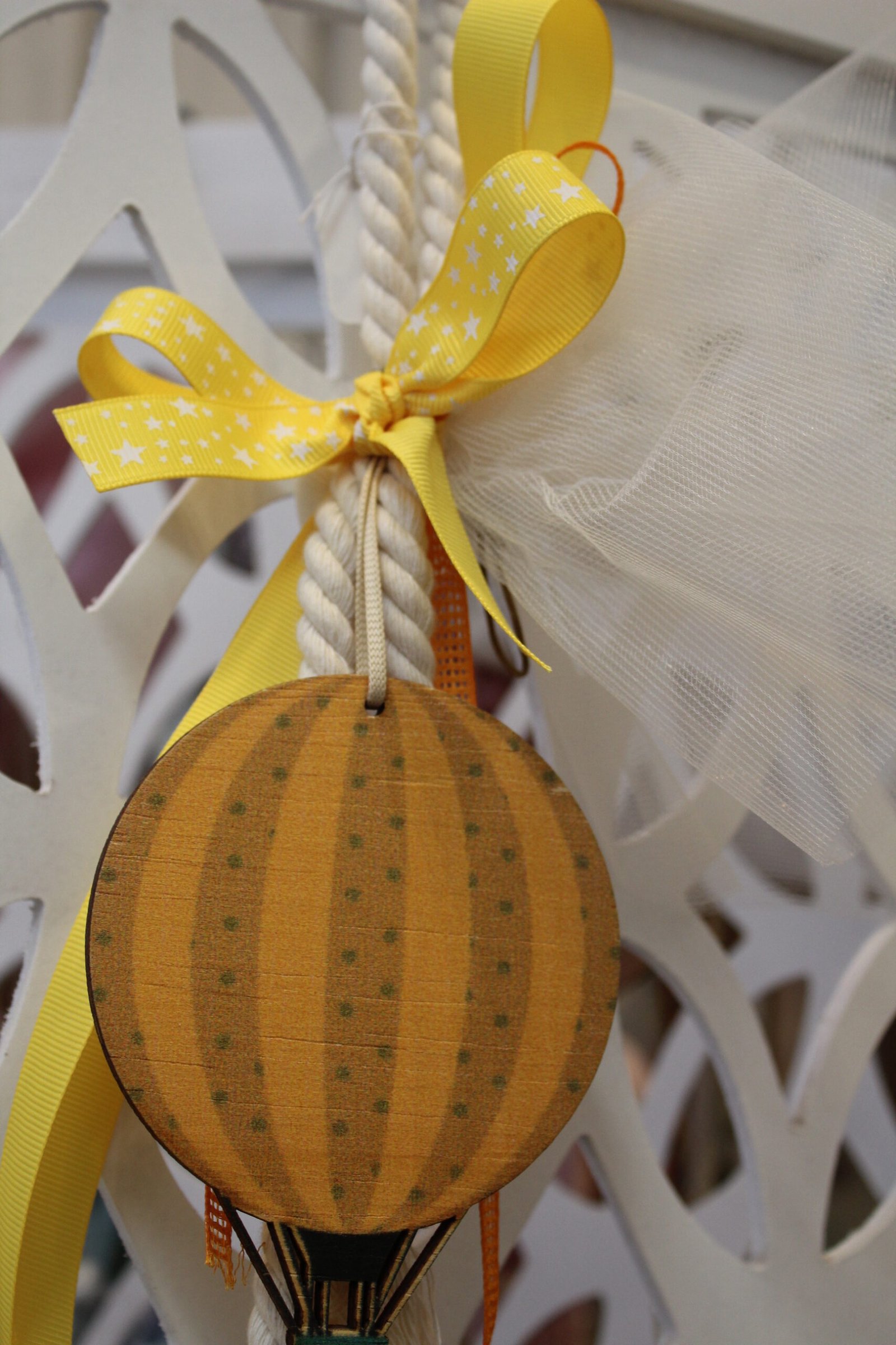 Κρεμαστή διακοσμητική μπομπονιέρα αερόστατο με το όνομα του παιδιού
