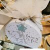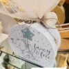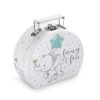 Χάρτινο οβάλ βαλιτσάκι print με θέμα ελεφαντάκι σε πουά φόντο. Το χαρούμενο ελεφαντάκι κρατάει μπαλόνι σε σχήμα αστεριού και χρυσό μονόγραμμα.