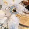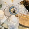 Διακοσμητική μπομπονιέρα Βάπτισης κουτάκι διάφανο πλέξιγκλας με χρυσό στεφάνι μαζί με μεταλλική κορώνα χρυσή με σμάλτο και πον πον.