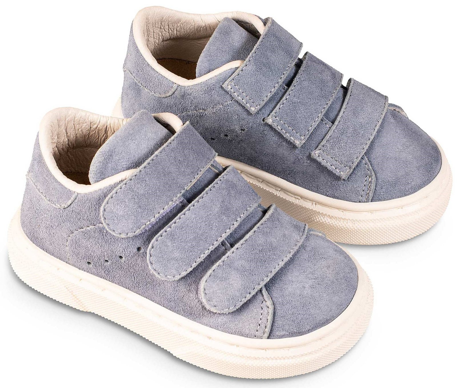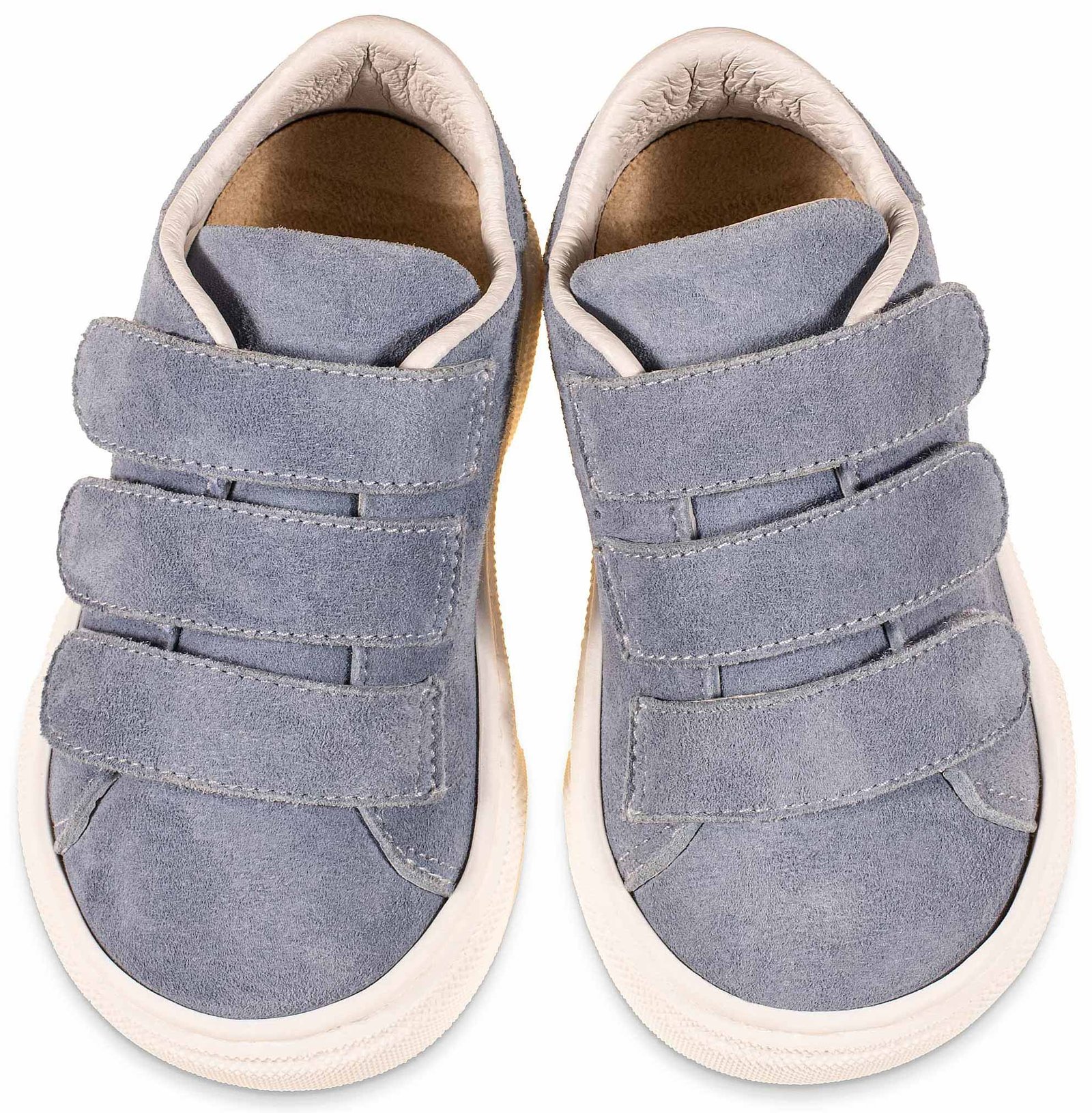 Δερμάτινο Mονόχρωμο Σνίκερ με Τριπλή Μπαρέτα Χρατς από Δέρμα Suede σε Σιέλ Χρώμα