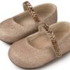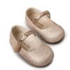Βαπτιστικά ανατομικά παπούτσια της εταιρίας Babywalker για κορίτσι. Παπουτσάκι από ύφασμα μεταλιζέ, με κρυστάλινη μπαρέτα, στο χρώμα του χαλκού.