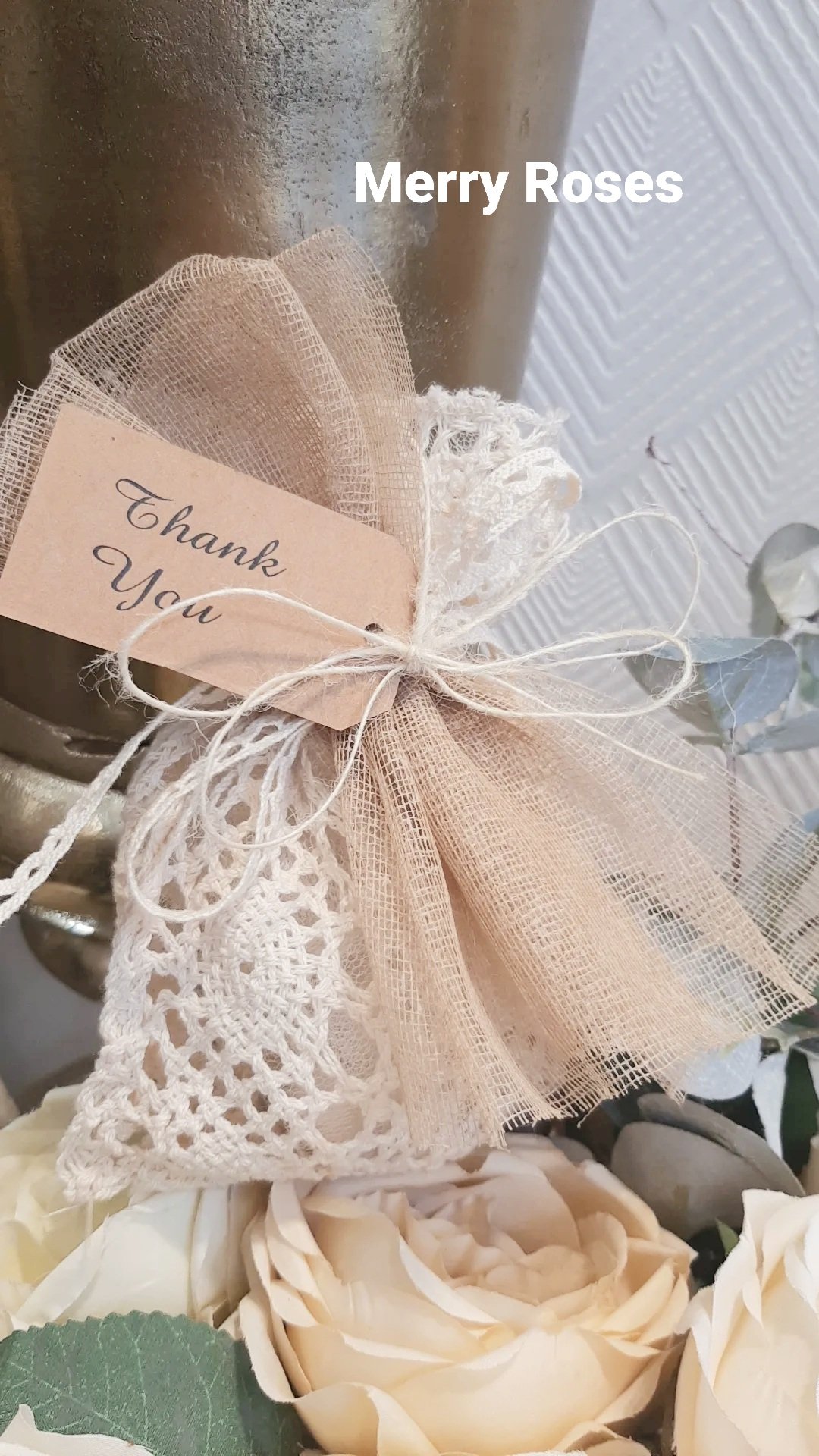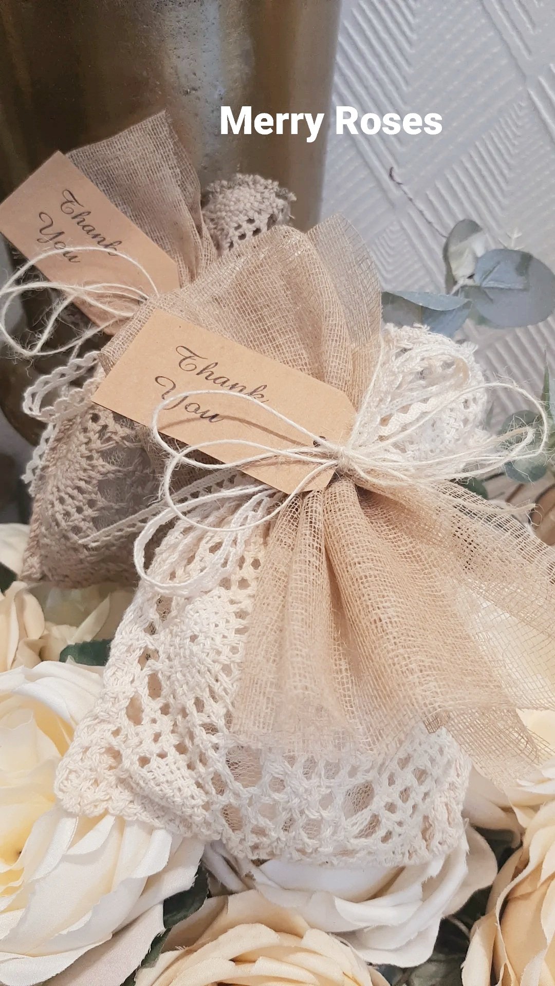 Vintage μπομπονιέρα γάμου με πουγκί πλεκτή δαντέλα 12×17 εκ.